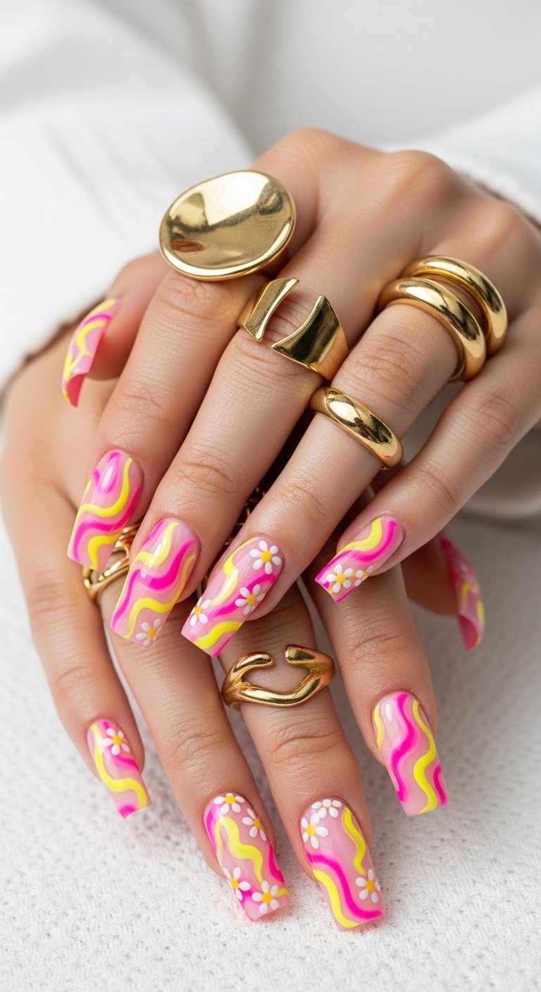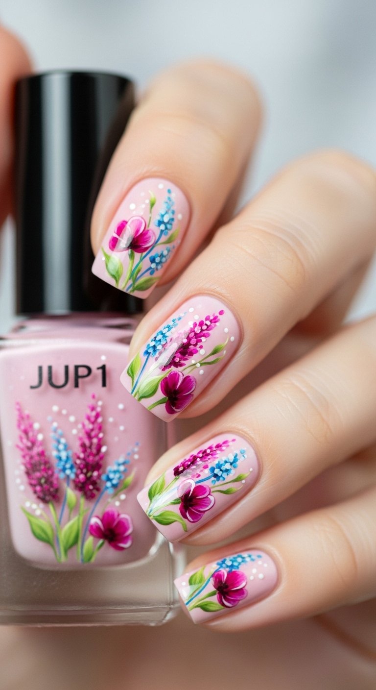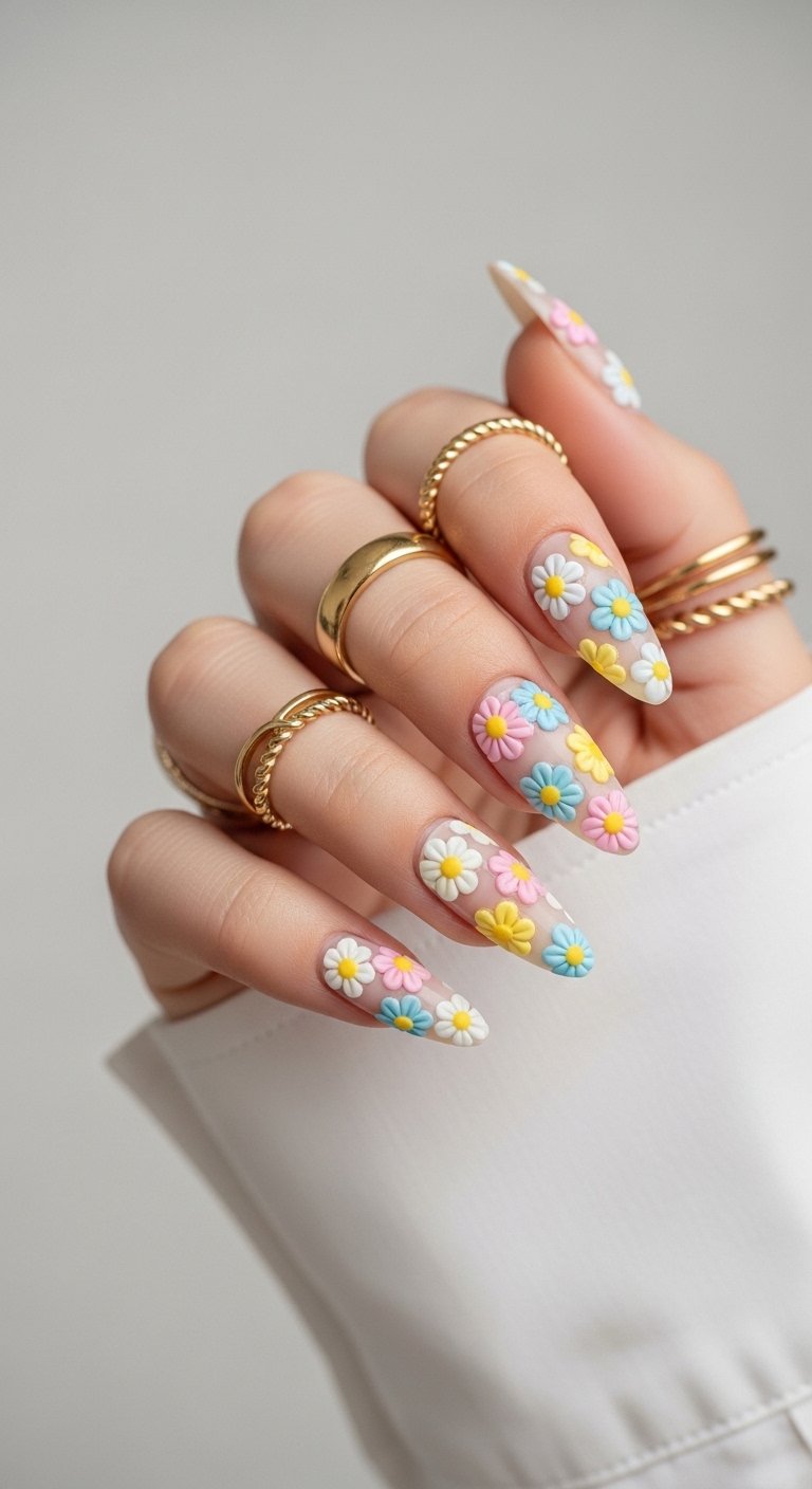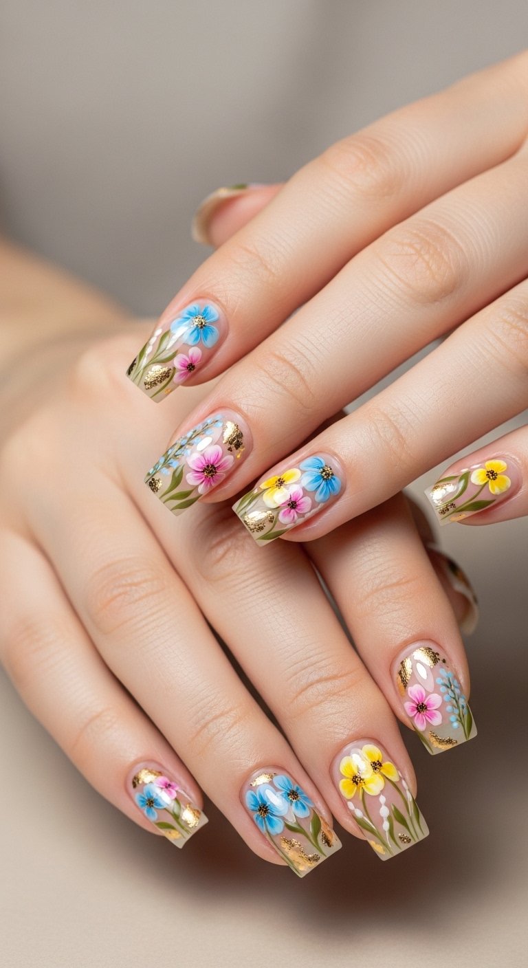 Can’t decide on one color? Use them all. This trend involves painting a different pastel floral design on every finger. One nail might have lilac lavender, the next a peach rose, the next a mint leaf pattern. The cohesive element is the pastel saturation level. It feels fun, playful, and eclectic. It encapsulates the joy of a spring garden where everything blooms at once.
