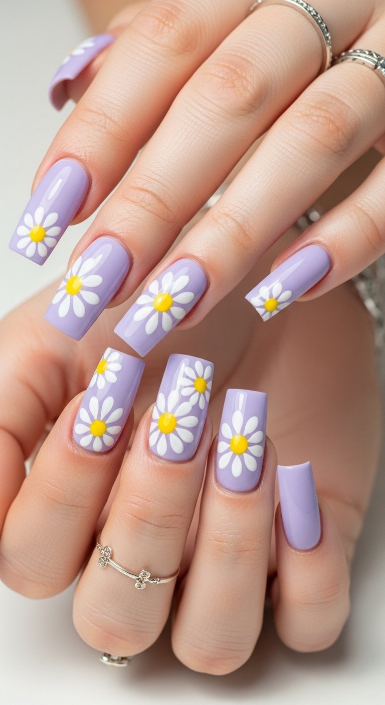 You can recreate this easily at home. A dotting tool is your best friend here. Dip the tool in white polish to make five dots in a circle, then place a yellow dot in the center. Repeat this pattern along the free edge of your nail. You can stick to classic white daisies or use pastel colors for a spring vibe. Keep the base of the nail bare or use a sheer pink polish to let the tips stand out. The precision of the placement is what makes this look professional.