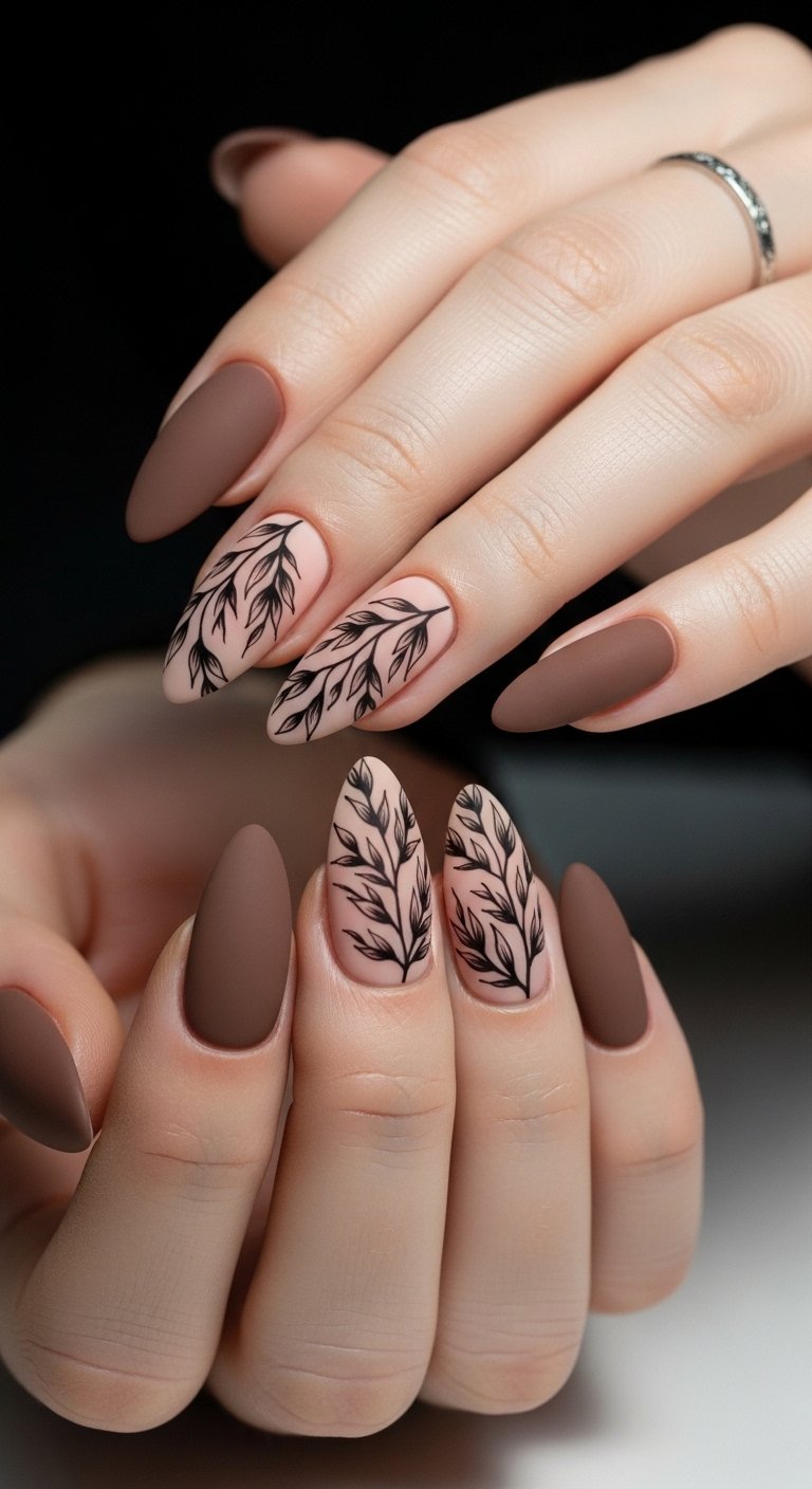 A steady hand is necessary for these fine lines. Use a high-pigment metallic gel paint. If you struggle with painting, look for gold metal stickers that lie flat on the nail. Seal them impeccably well. The contrast between the metallic shine and the natural nail plate creates a stunning visual interest. You can place one large floral outline on the ring finger or do small vines climbing up every nail.