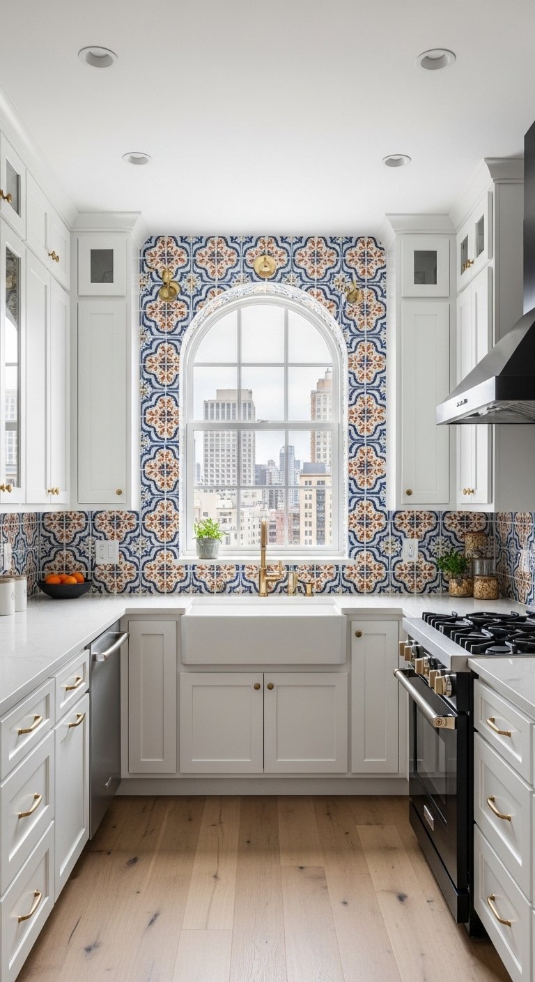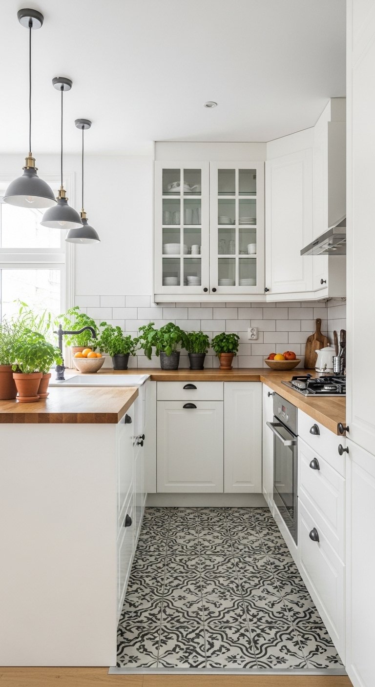 Small floors provide a unique opportunity for bold design choices. Patterned tiles distract the eye from the limited dimensions of the room. You select a geometric or encaustic tile with a strong motif. The intricate design becomes the hero of the kitchen. You keep the cabinets and walls neutral to let the floor shine. The pattern creates a sense of movement and energy. You do not notice the wall boundaries as much when looking at the floor design. The durability of ceramic or porcelain stands up to heavy traffic. The tiles add a layer of historical charm or modern art depending on the print.