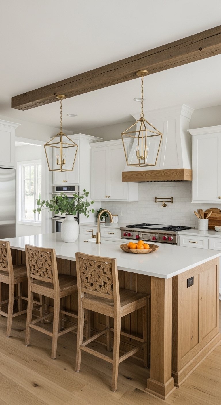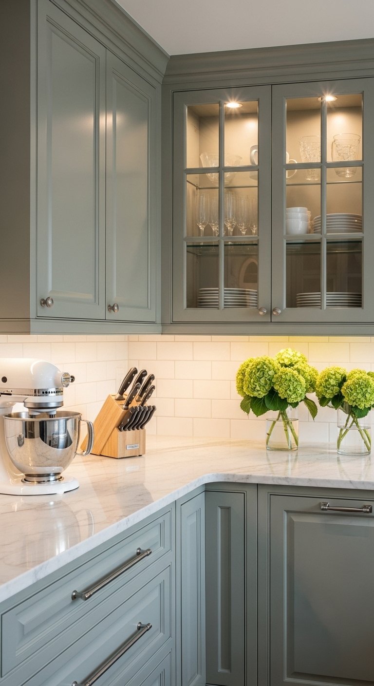 The space above your cabinets often gathers dust. You utilize this gap for long term storage. You place attractive baskets or bins on top of the upper cabinets. These containers hold items you use rarely like holiday platters or extra appliances. The uniform look of the baskets reduces visual clutter. You choose wire or woven materials to add texture. The vertical eye movement makes the ceiling feel higher. You keep the counters clear by moving non essentials up high. This strategy maximizes the total volume of the room.