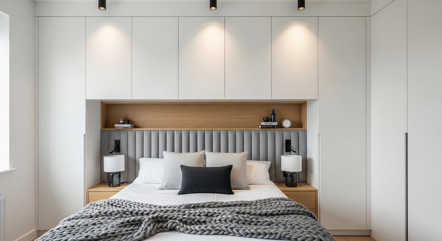 A headboard can be more than just a decorative backrest. You can build or buy a headboard that incorporates side storage or a top ledge. This eliminates the need for nightstands entirely in very narrow rooms. You can place your phone, a book, and a glass of water right behind your head. The structure acts as a focal point and a functional storage unit. This creates a streamlined look where the bed and storage are one cohesive unit. You can use wood planks for a rustic look or painted MDF for a modern finish. The depth of the shelving adds a layer of interest to the wall behind the bed.