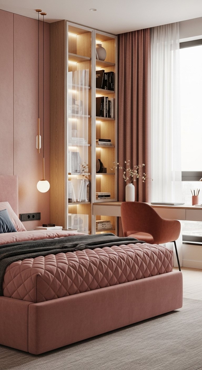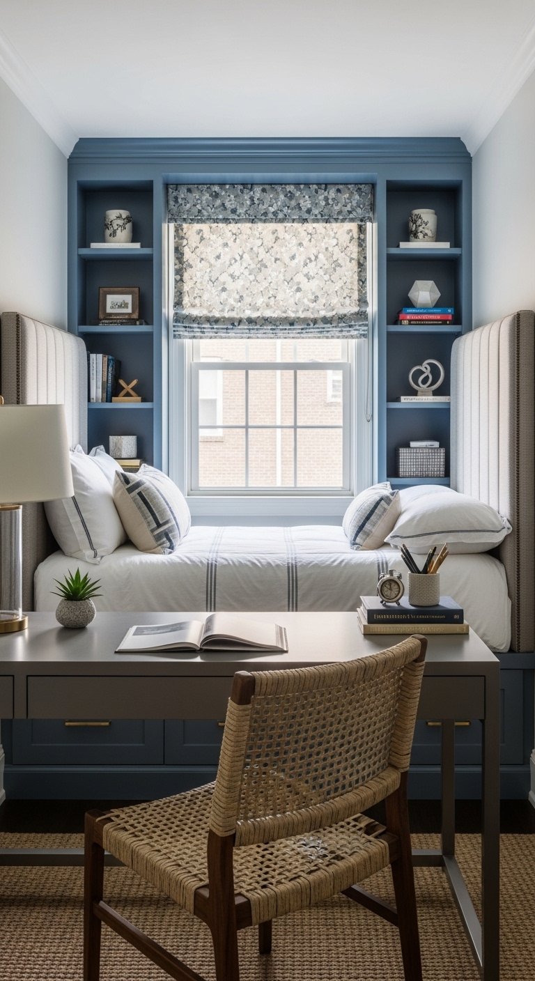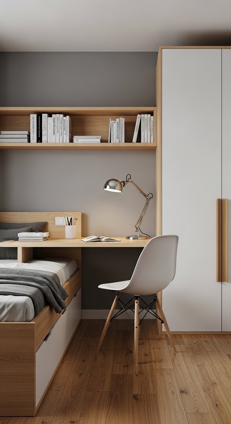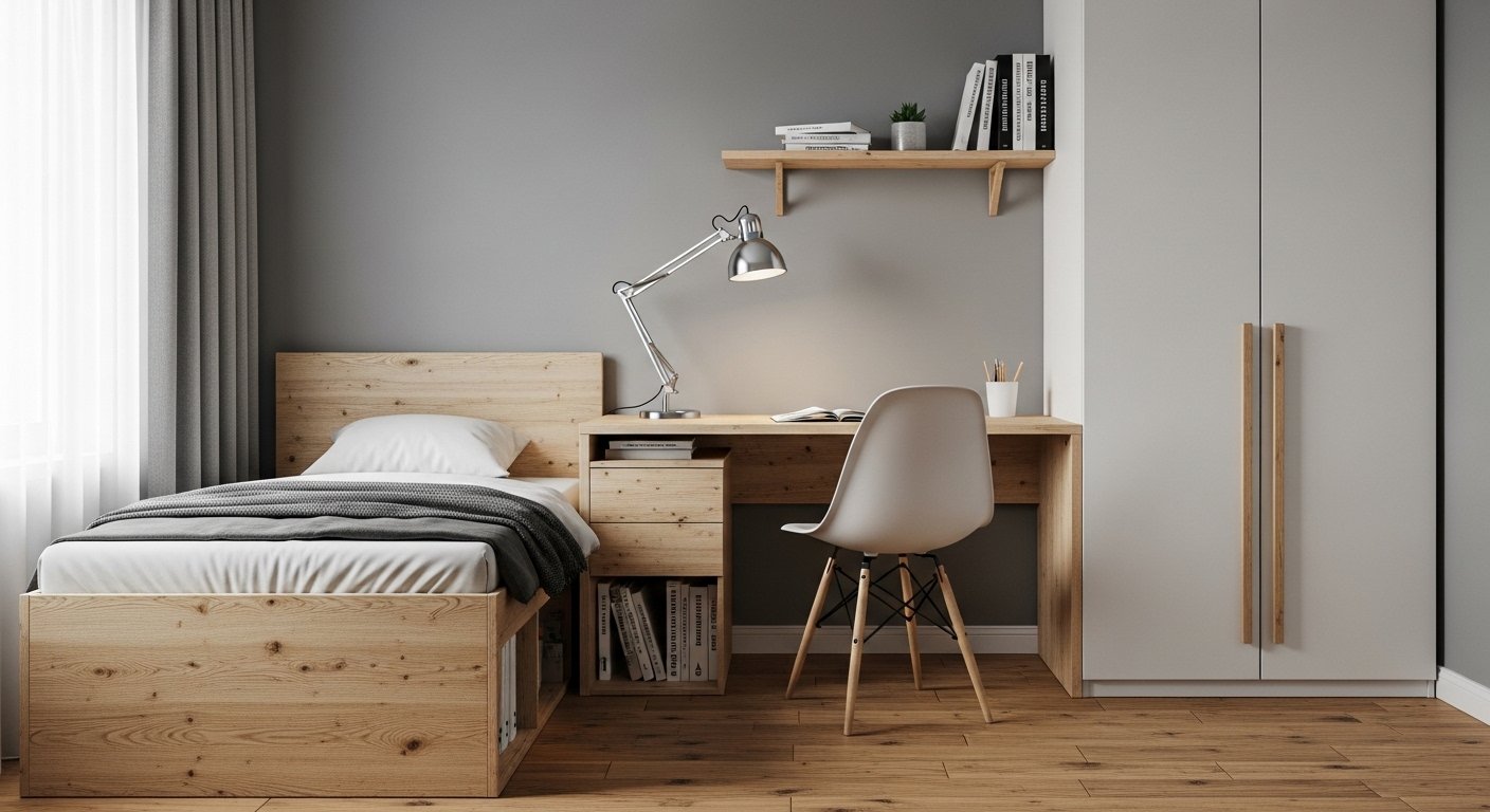 Corners are often dead space in a bedroom. You can install custom triangular shelving to utilize this awkward area. A corner desk can provide a workspace that does not intrude into the center of the room. This ergonomic placement keeps the flow of the room open. You can also use a corner hanging rod for clothes if you lack closet space. Every inch counts in a small room and corners offer deep storage potential. This design choice turns a negative space into a functional asset.