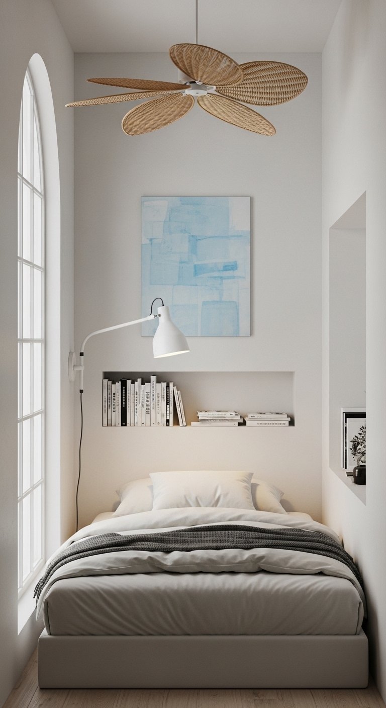Vertical space is the most underutilized asset in small bedroom design. You must look above eye level to find opportunities for storage and decoration. Tall shelving units that reach the ceiling draw the eye upward and make the room feel loftier. This vertical emphasis counters the cramped feeling of a small footprint. You can place less frequently used items on the highest shelves while keeping daily essentials within reach. The visual lines created by tall furniture guide the gaze along the height of the wall rather than the width of the floor. This technique creates a sense of grandeur even in a tiny room. You can install a shelf above the door frame for books or decorative baskets.