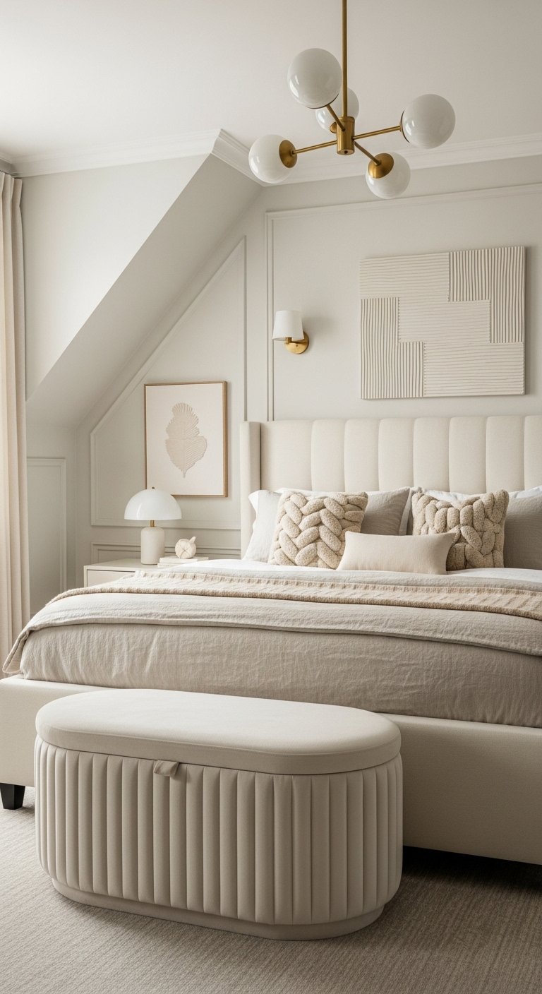 Use different textures of white and cream to add depth so the room does not feel clinical or flat.