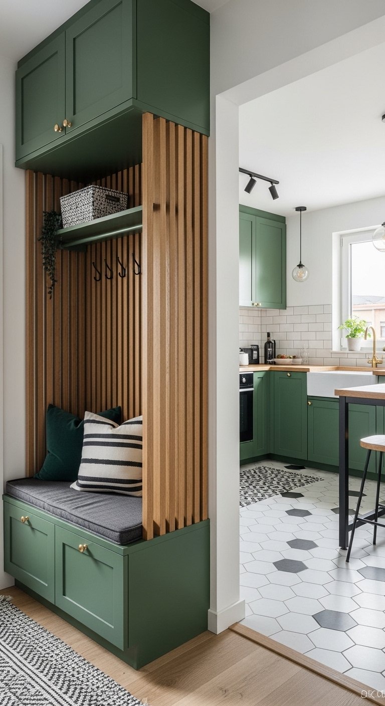 Matte finishes work best here. They absorb light rather than reflecting it. This softens the visual impact of bold hues. Pair these strong colors with warm wood tones to keep the space inviting. You do not want a clinical feel. Hardware in brass or matte black adds the final polish. This approach proves that limited square footage does not mean limited style.