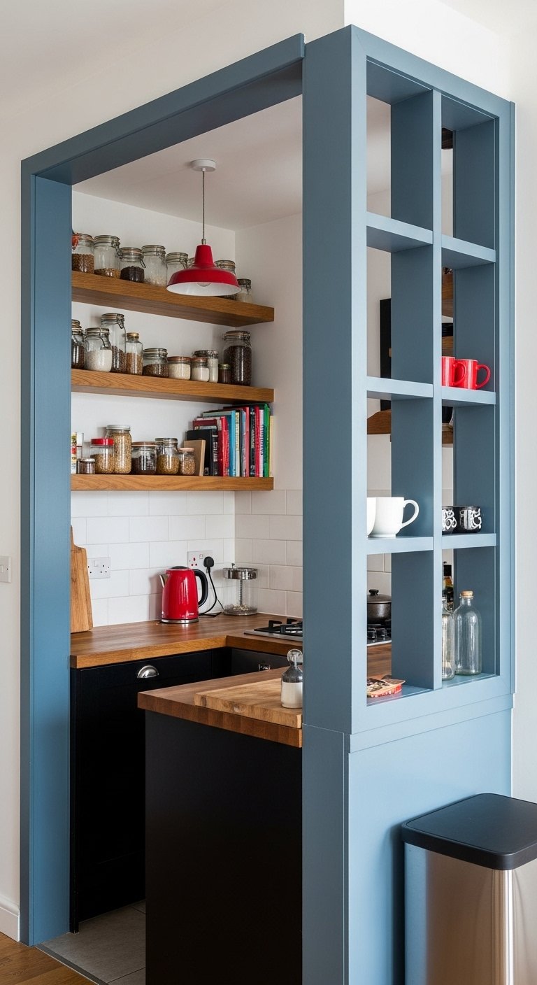 Most people default to white for small spaces. You can break this rule. Using bold colors like navy, forest green, or terracotta infuses personality into a tiny kitchen. The trick lies in saturation. A deeply saturated cabinet color grounds the room. It draws the eye down and makes the ceilings feel higher by comparison. Keep your upper cabinets or shelving neutral to maintain balance.