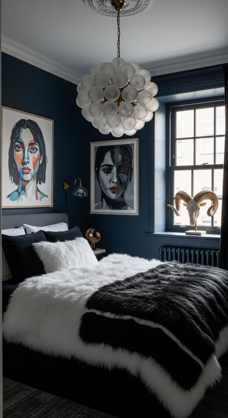 In a small room, the floor is often crowded with necessities like the bed and dresser. This makes the ceiling one of the few open “canvases” left to make a design impact. Installing a statement chandelier draws the eye upward immediately upon entering the room. This vertical movement of the eye tricks the brain into perceiving the ceiling as higher than it actually is, creating a sense of volume that counteracts the tight floor plan.