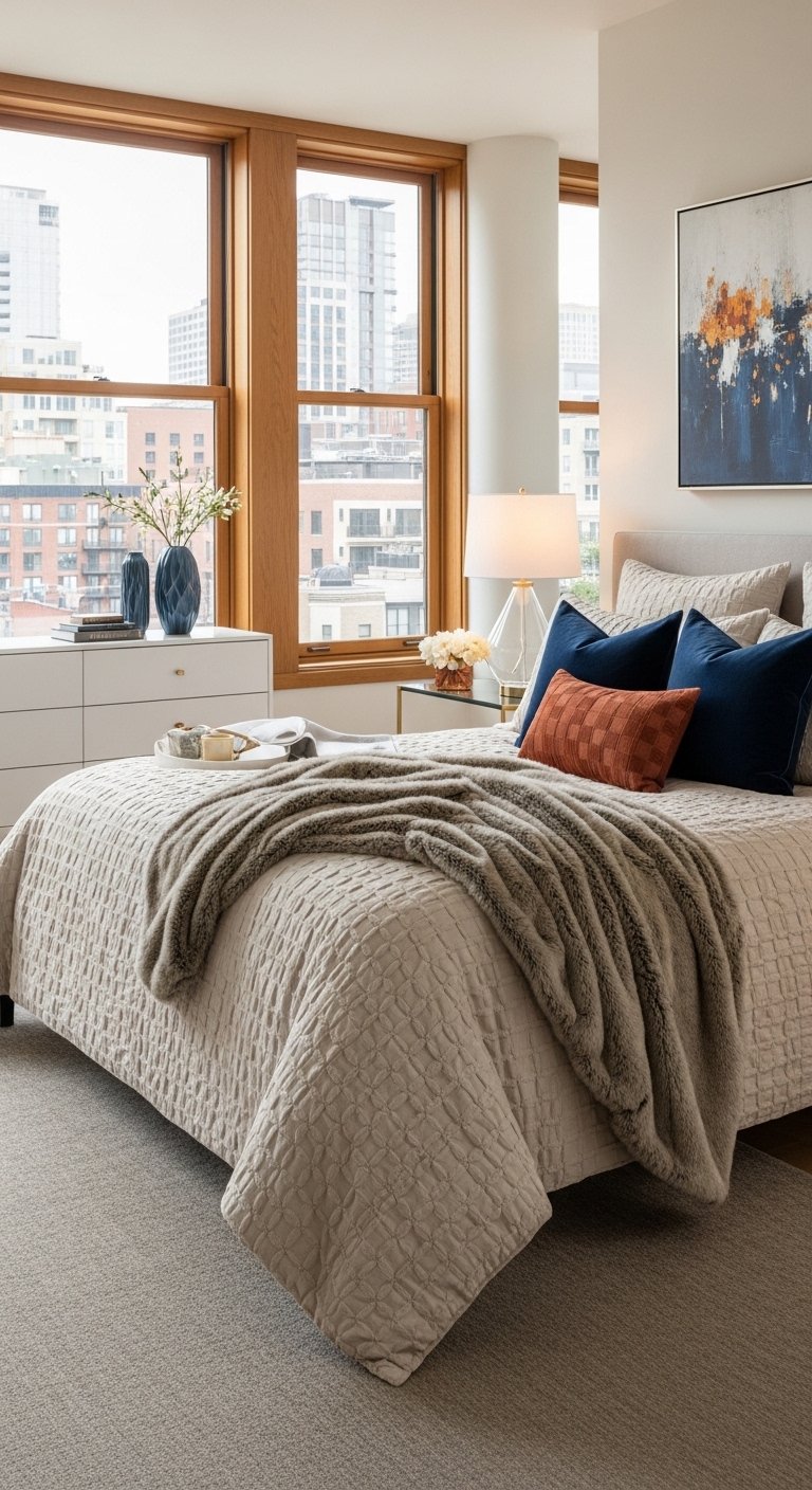 Your bed is the largest object in the room, so its appearance dictates the vibe of the entire space. A messy or uninspired bed makes the whole apartment feel disorganized. Styling your bed with layers creates a focal point that feels intentional and inviting.