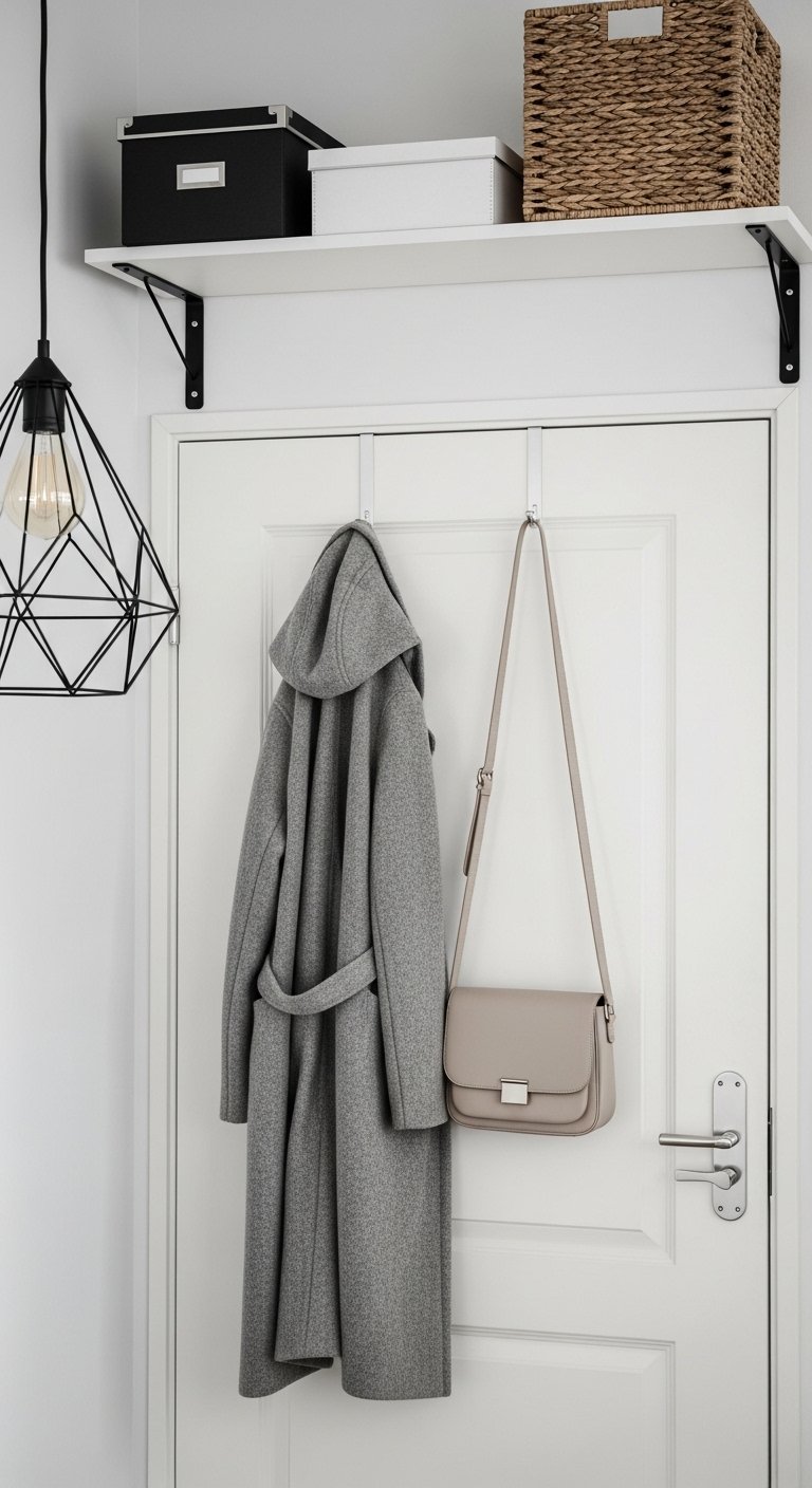 Use this space to hang robes, tomorrow’s outfit, bags, or scarves. If you have a small closet, an over-the-door shoe rack can free up significant floor space inside the closet itself. This utilizes “dead” vertical space and keeps items off the floor and chairs.