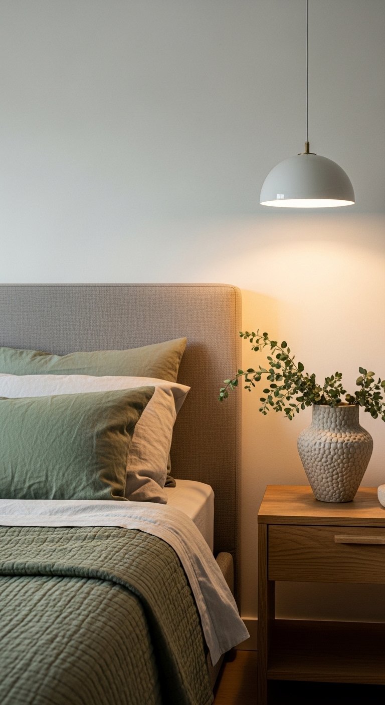 - 30%: Secondary texture or shade (Bedding, rug, curtains).