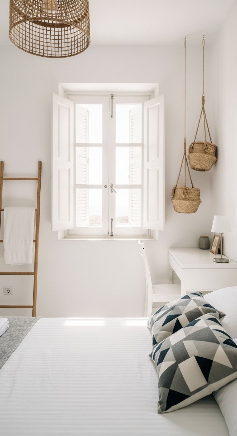 Place a large, sturdy basket in a corner for laundry or extra bedding. Smaller, matching baskets can sit on open shelves to hide charging cables, skincare products, or paperwork. This technique creates a unified look where storage becomes part of the decor rather than a plastic bin you want to hide.