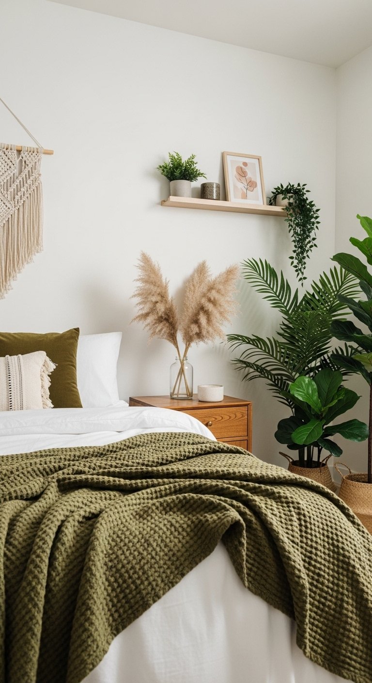 Bringing nature indoors blurs the lines between the built environment and the outside world. Plants add vibrancy, improve air quality, and introduce organic shapes that break up the rigidity of furniture. In a small bedroom, you might think you don’t have space for pots, but this is where you get creative with placement.