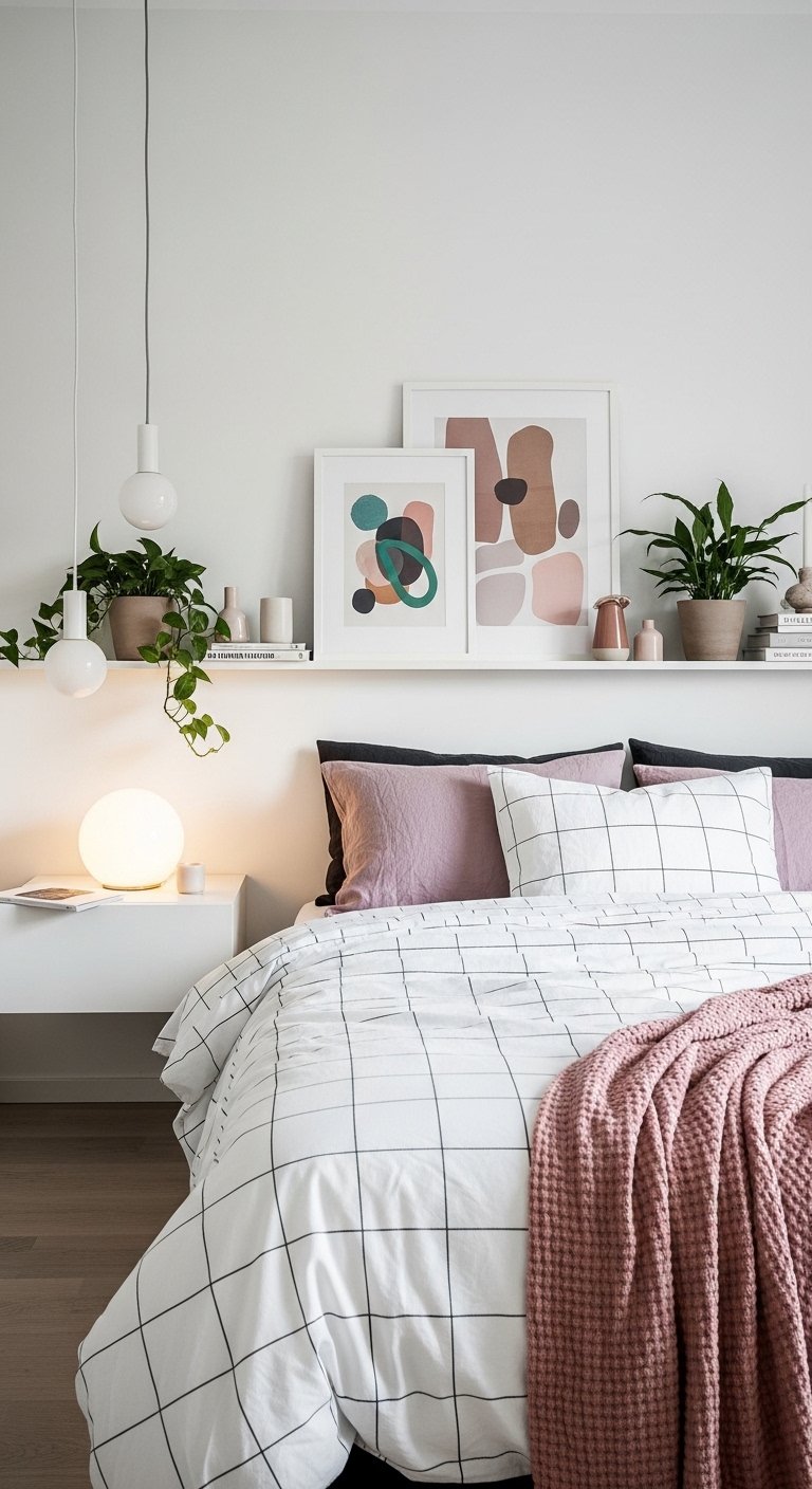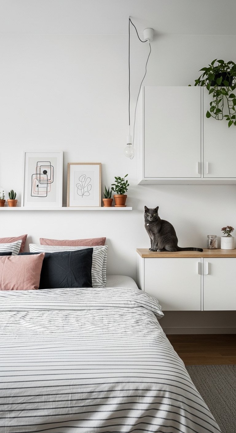 If you are lucky enough to have deep window sills, do not let them go to waste. A sill can act as a secondary nightstand, a bookshelf, or a plant display. In extremely tight rooms, pushing the bed up against the window allows the sill to function as your primary bedside table.