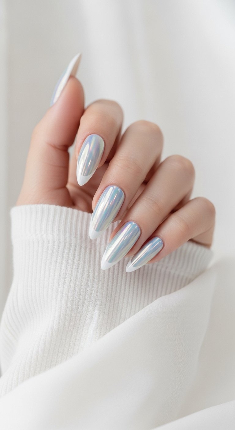 - Elegant Pearl Chrome Almond Nails