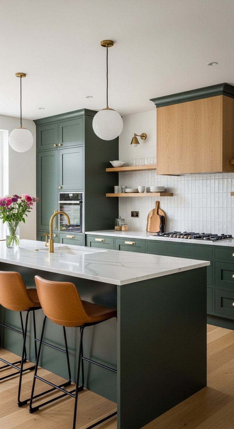Textured tiles like handmade zellige or three-dimensional ceramics catch the light beautifully. This play of light adds movement to the space. You should extend the tile all the way to the ceiling around windows or range hoods. This vertical extension lifts the eye and makes the ceiling feel higher. A bold backsplash does the heavy lifting for the entire design scheme.