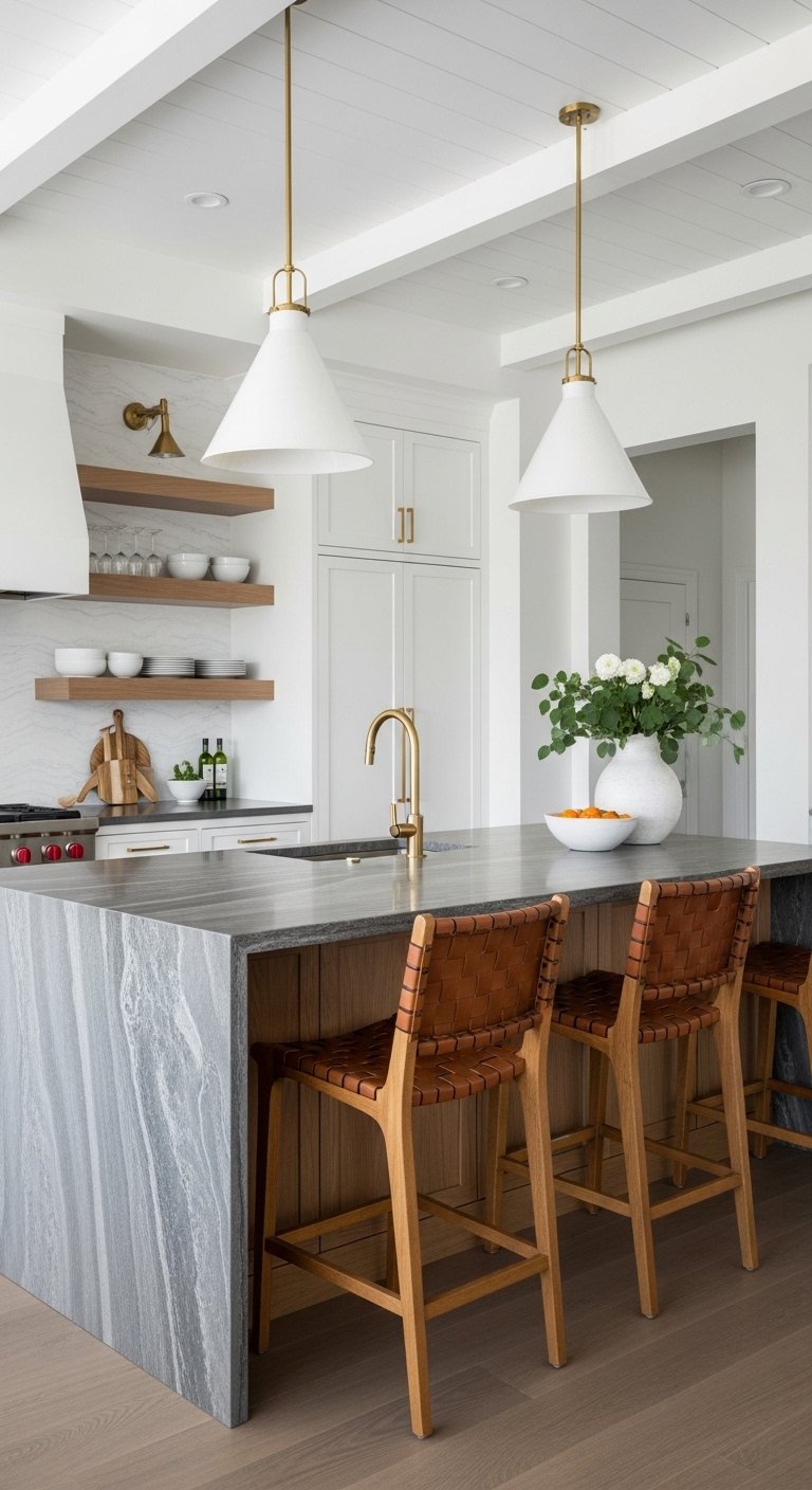 • Accent: Statement pendants over the peninsula or sink.