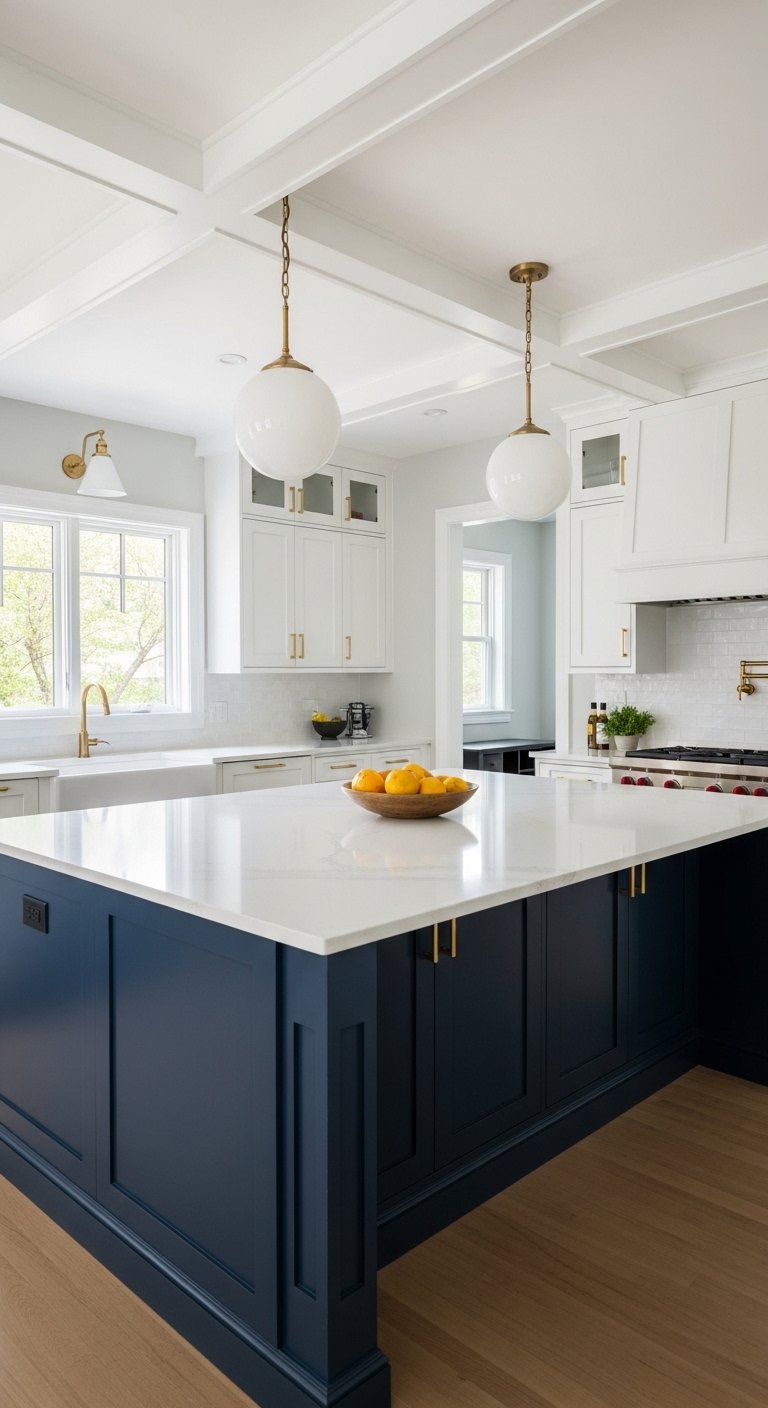 This technique grounds the space while maintaining a sense of height. The separation of color creates a distinct horizon line that tricks the eye into seeing a larger room. You can also apply this logic to a pantry wall or a peninsula to define specific zones. The contrast between the two tones adds instant architectural interest without needing structural changes.