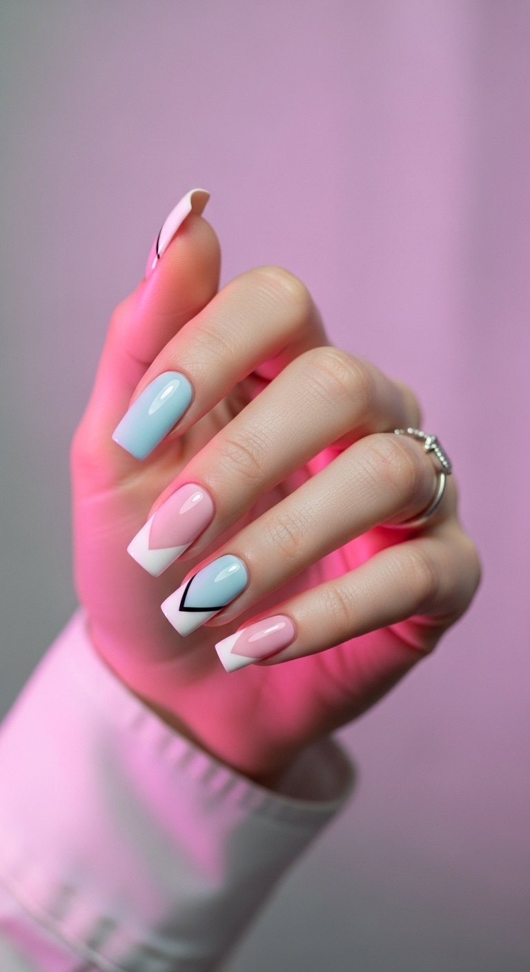 Color blocking separates the nail into distinct sections. You might paint one half red and the other half green glitter. You separate them with a gold line. This is a geometric and bold approach.