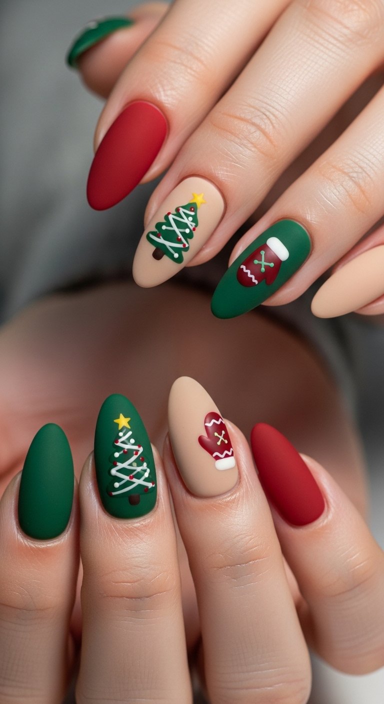- Cheerful Red and Green Nails