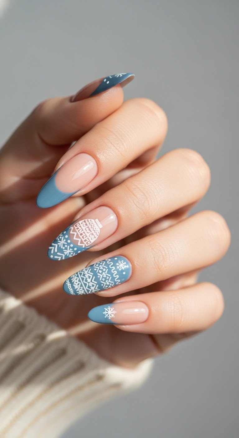 - Whimsical Blue Christmas Nails