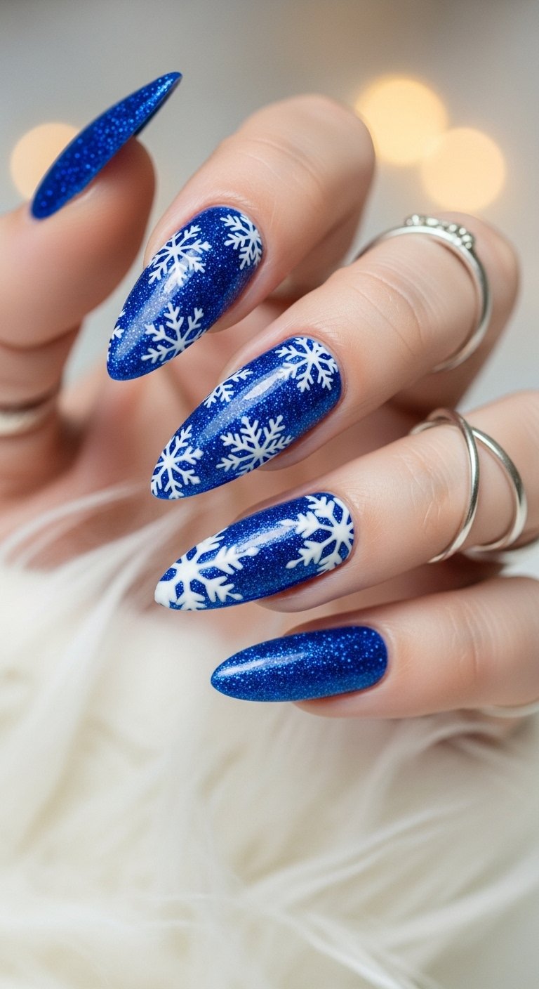 The varying sizes of glitter particles create depth. Chunky hexagonal glitter mixed with fine dust looks best. This reflects light in multiple directions. It gives the appearance of falling snow accumulating on your fingertips. This design is very forgiving for beginners. The sponge technique hides imperfections in application.