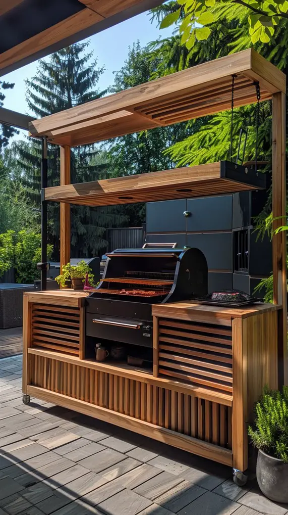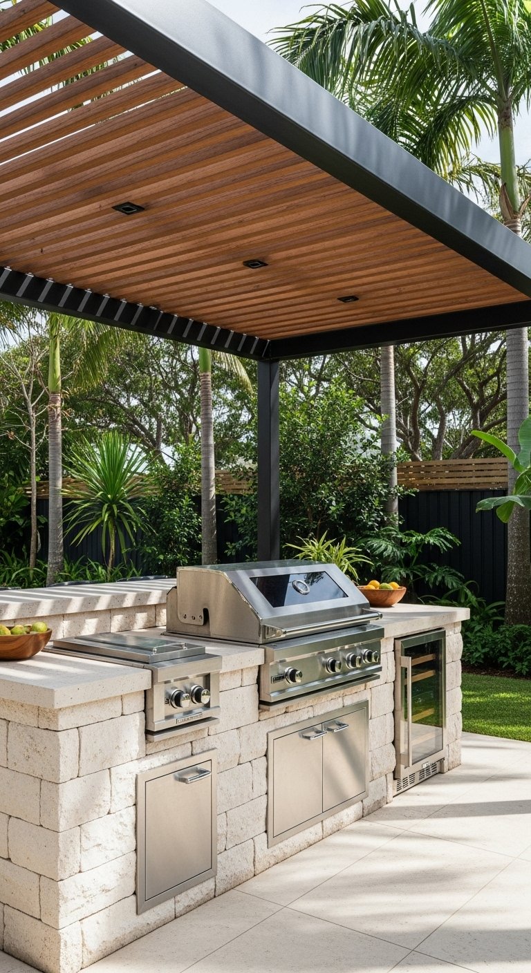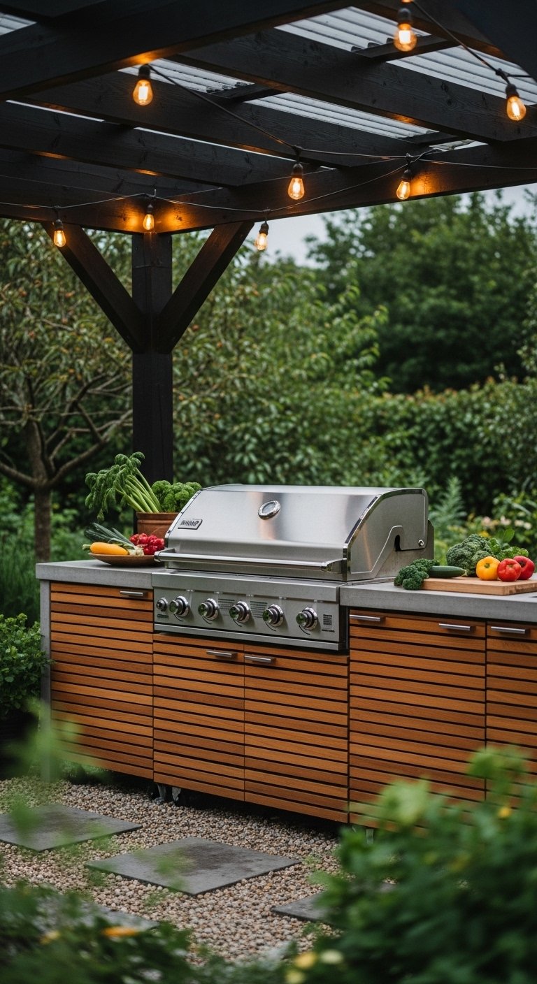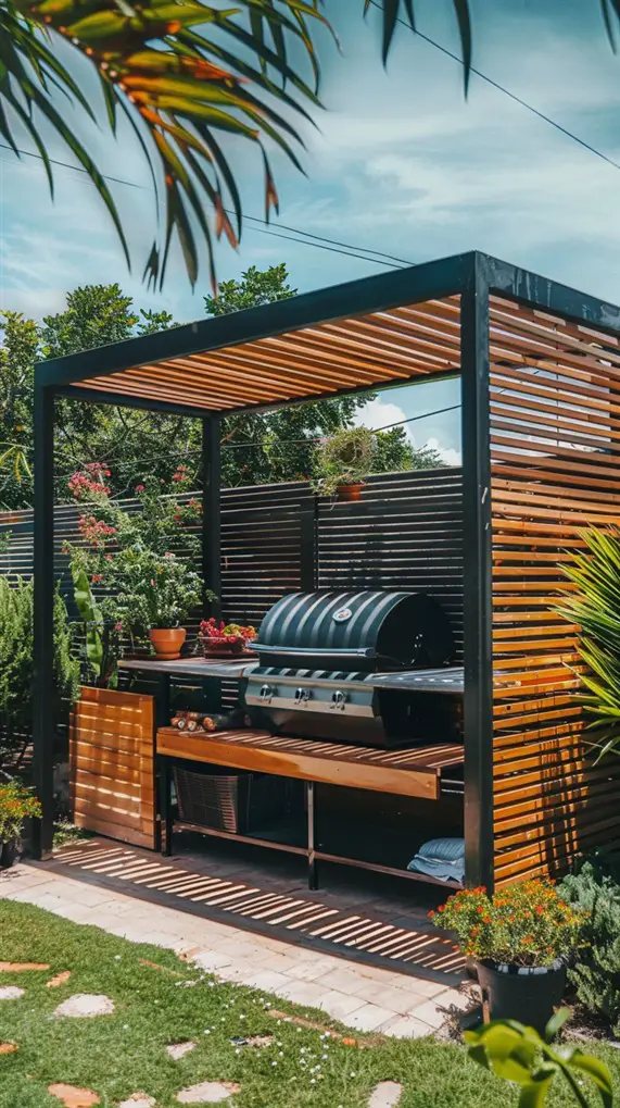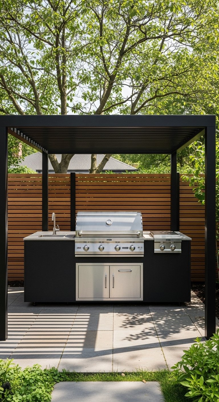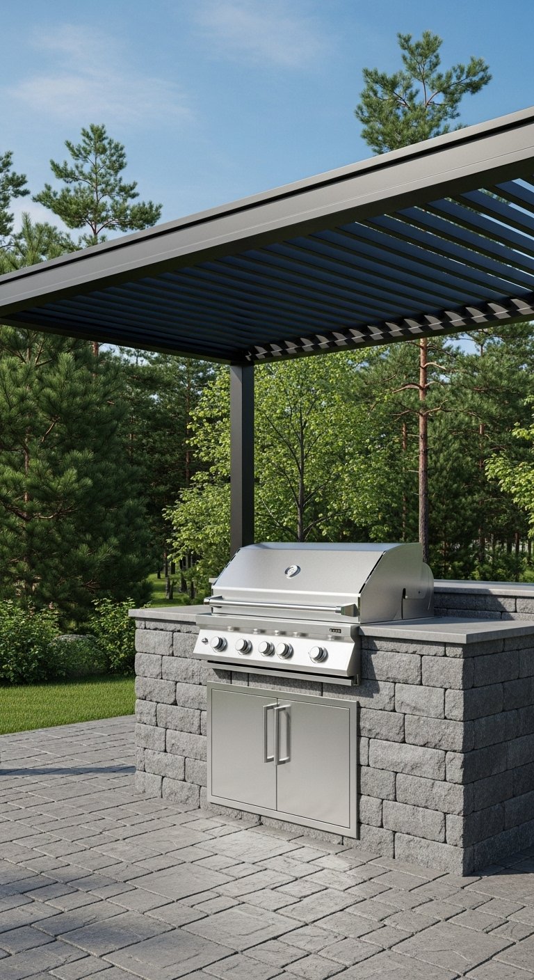 Pro Tip: Check the height clearance of your pergola; you need enough space for grill smoke to dissipate without staining the roof.