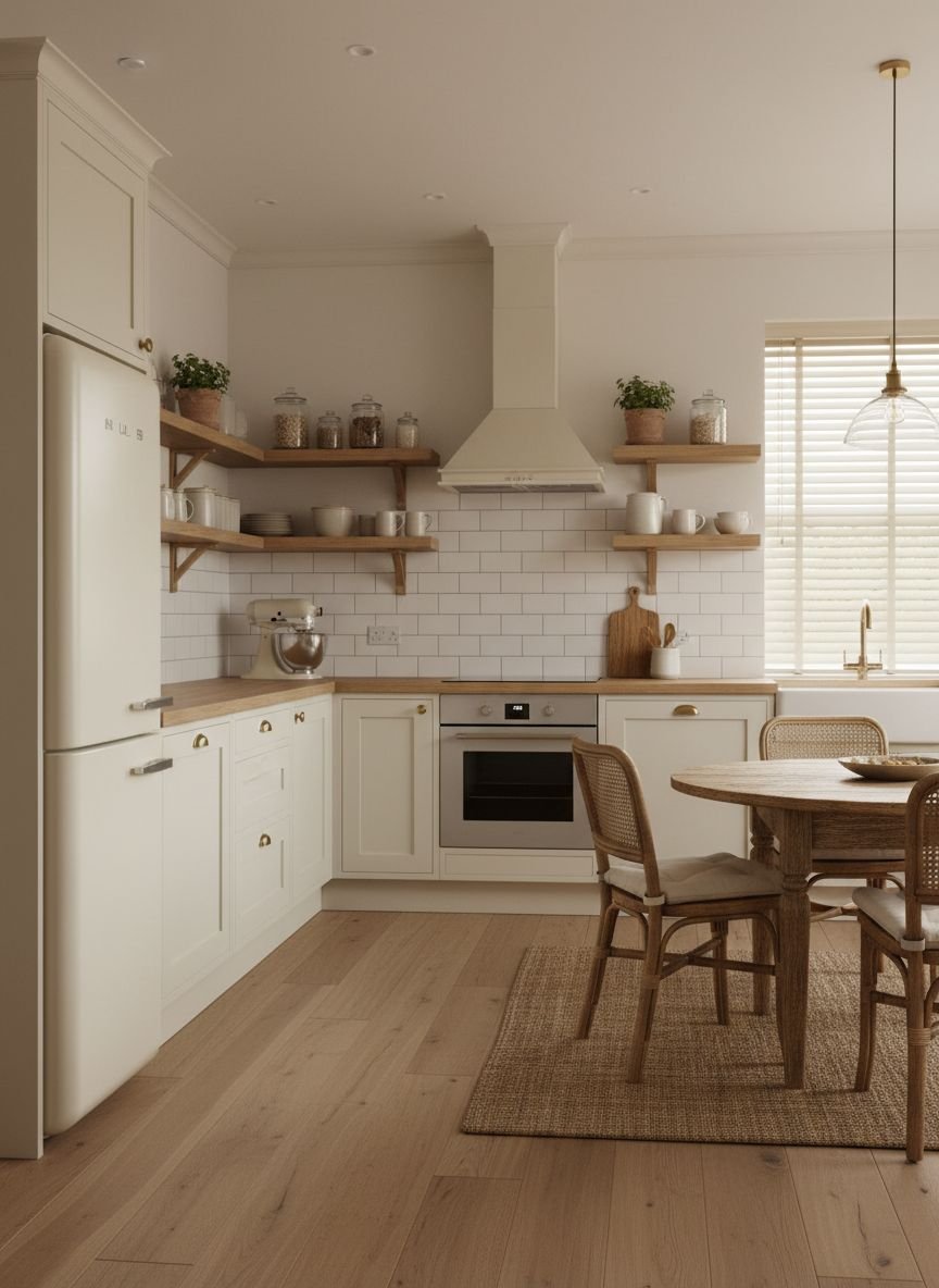 • Mixed Eras: The most viral kitchens successfully blend vintage runners and antique brass with modern quartz and smart appliances.