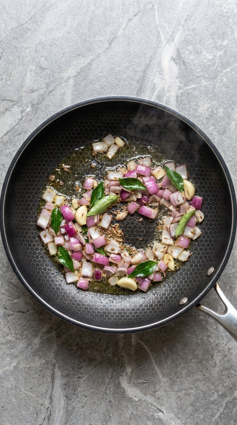 The Sizzle: Heat the oil in a large pot over medium heat. Add the cumin seeds first; once they start to dance and pop, add the onion. Sauté until the onions are translucent and slightly golden.