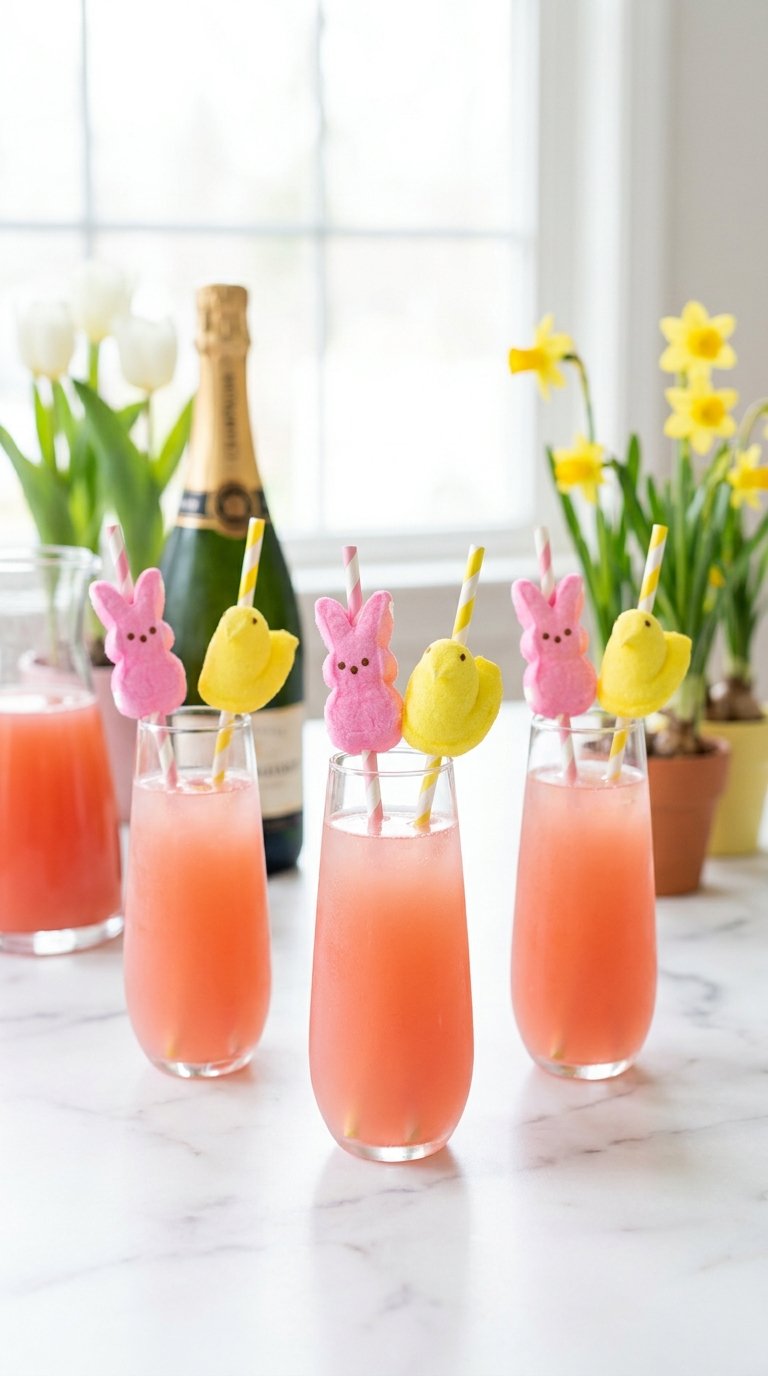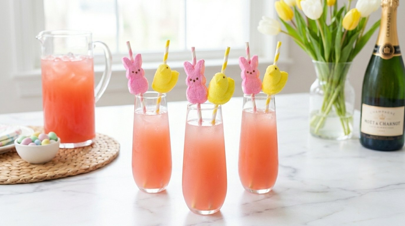 Easter brunch planning causes stress. The candy beverage trend solves this problem. This easy peeps mimosa recipe list brightens any spring table. Guests love colorful spring champagne drinks. You want a beautiful setup without the hard work. This guide delivers 30 unique marshmallow rim champagne flutes and budget friendly Easter party drinks.