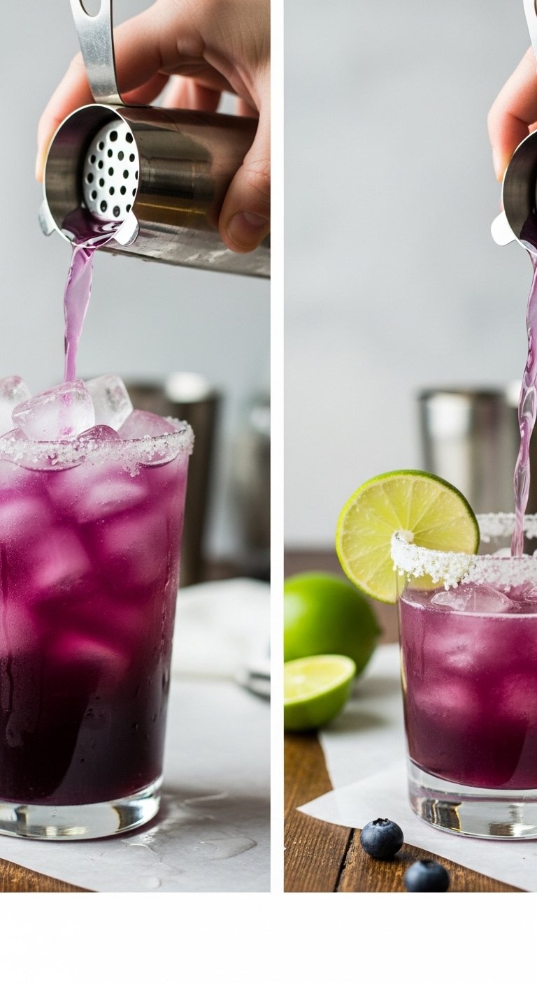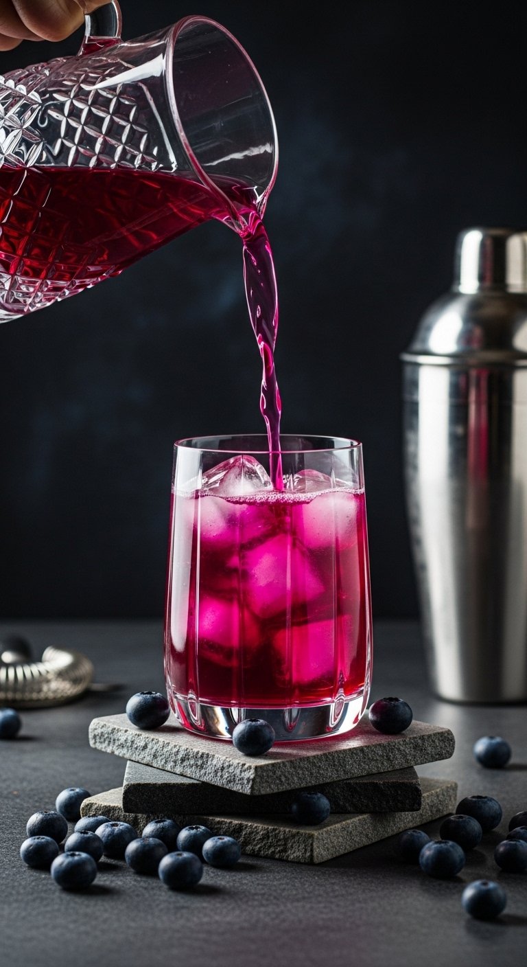 Double Strain: To catch all the blueberry skins, seeds, and ice shards, use a Hawthorne strainer on your shaker and pour the drink through a fine-mesh sieve directly into your serving glass.