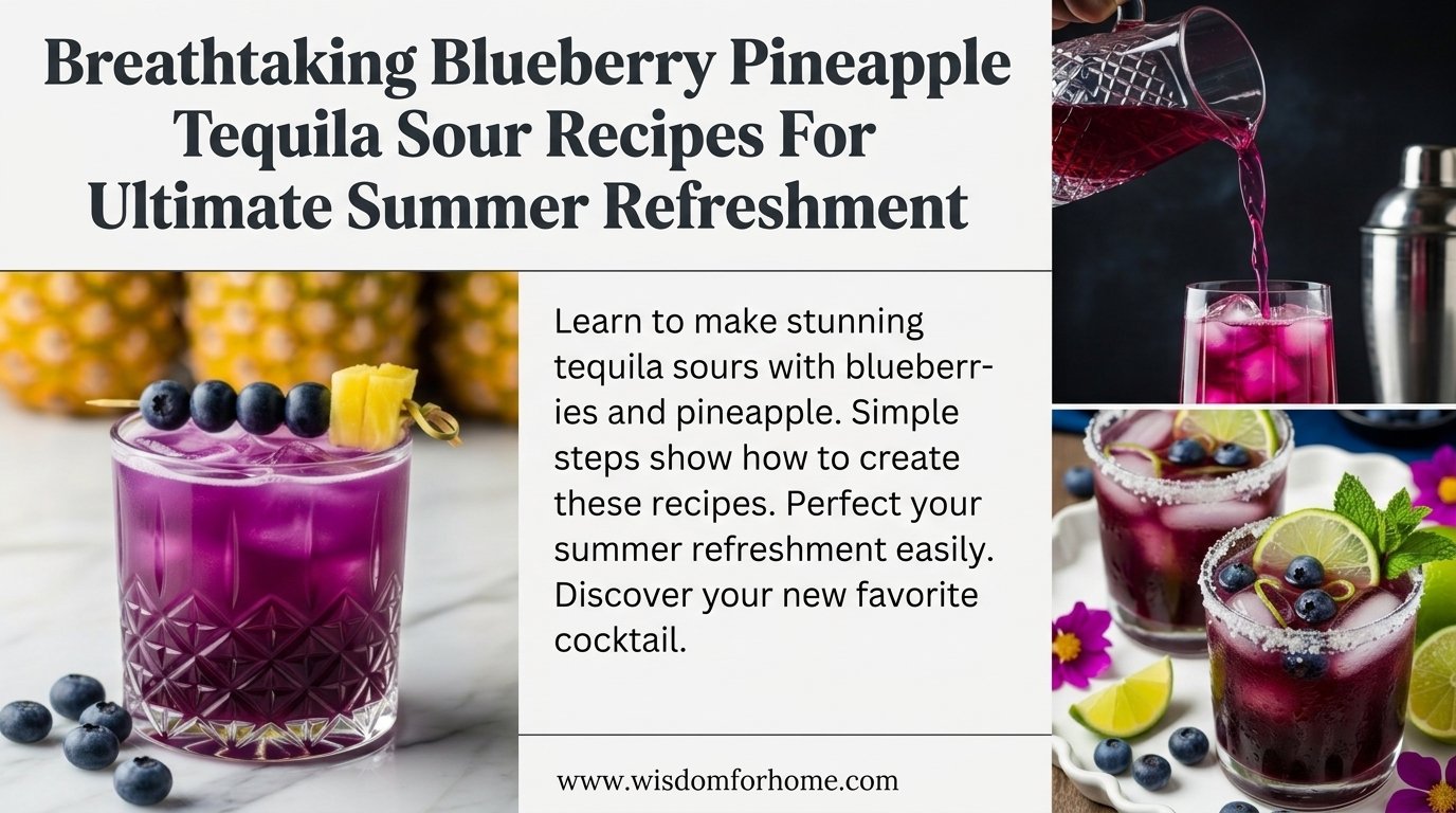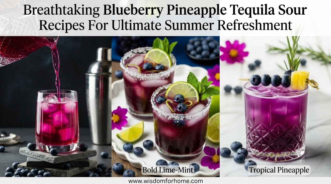 The blueberry pineapple tequila sour recipe trend currently dominates summer entertaining menus everywhere. You struggle to find a signature mixed drink that impresses guests without requiring professional mixology skills. This guide delivers twenty five exact methods to mix and serve this bold tropical cocktail. You will learn the precise steps to create thick cocktail foam and perfectly balanced fruit flavors. Every single variation solves a specific party planning challenge for your weekend gatherings. You get actionable advice on choosing glassware and picking the right spirits. These simple ingredient combinations turn basic liquors into premium tasting beverages. Your friends will constantly ask for your secret recipe after tasting this brilliant purple drink. Check out our related guide on summer home entertaining atWisdom For Home for more hosting ideas.
