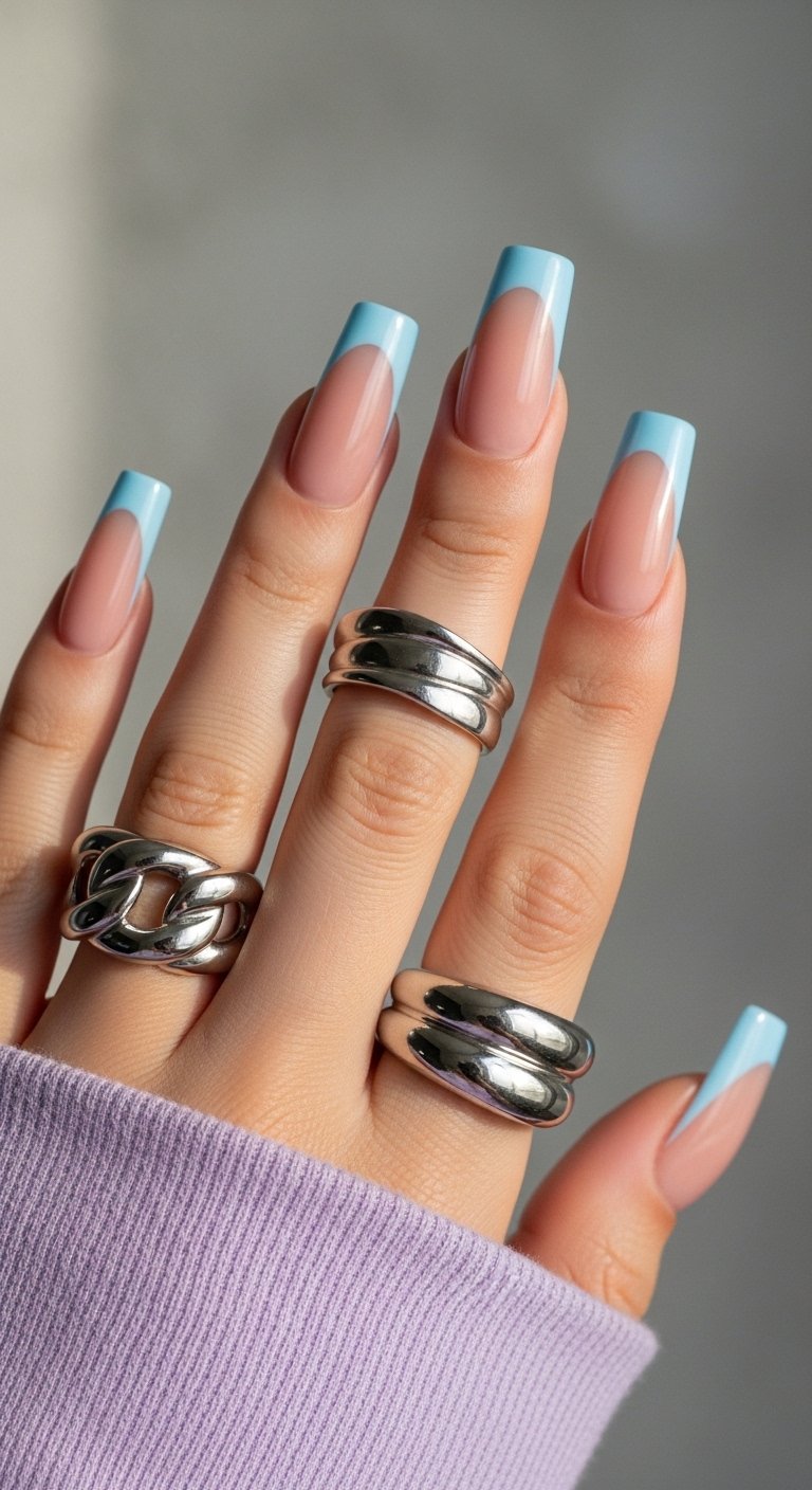 Thick white tips create a bold visual statement on any hand. The oversized white section covers more of the nail bed for maximum contrast. You achieve a dramatic effect by extending the white polish further down the nail. The sheer nude base balances the heavy white portion. This style works best on longer nails. The extended length provides enough room for the exaggerated tip without dwarfing the natural nail. You paint the thick white line using a smooth sweeping motion. The opaque white polish covers any natural free edge. Bold designs like this grab attention. You project pure confidence with every hand gesture. Save this idea to your Pinterest. Pro Tip. Apply two thin coats of white polish rather than one thick coat to prevent bubbling.