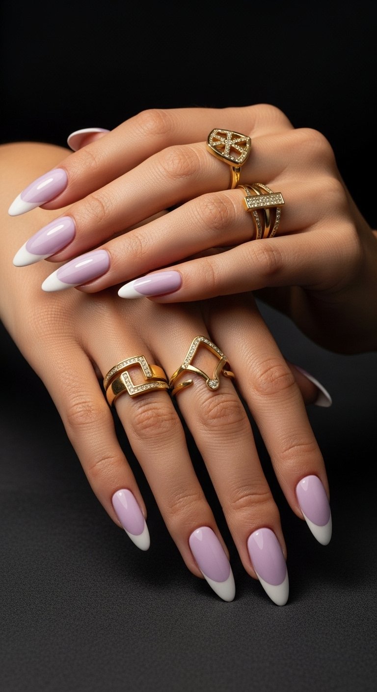 Double lined white tips add architectural interest to your manicure. You paint a traditional white tip first. You then add a secondary thin white line just below the main curve. The negative space between the two lines creates a floating effect. This geometric approach modernizes the standard French manicure. The dual lines draw the eye and create visual intrigue. You need a steady hand and a striping brush to execute this design. The sheer pink base provides a blank canvas for the white lines. The strict precision of the lines gives the design a graphic edge. You seal the intricate work with a leveling top coat. The glossy finish protects the delicate lines from chipping. Save this idea to your Pinterest. Pro Tip. Wait for the first line to dry clear before attempting the second line.