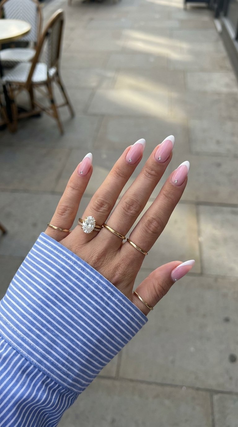 Short oval shapes with a sheer clear base coat require very little daily upkeep. You avoid obvious dark chips with light soft clear colors. Natural slow growth blends straight into the clear pink base over time. You spend way less time at the salon with this smart simple approach.