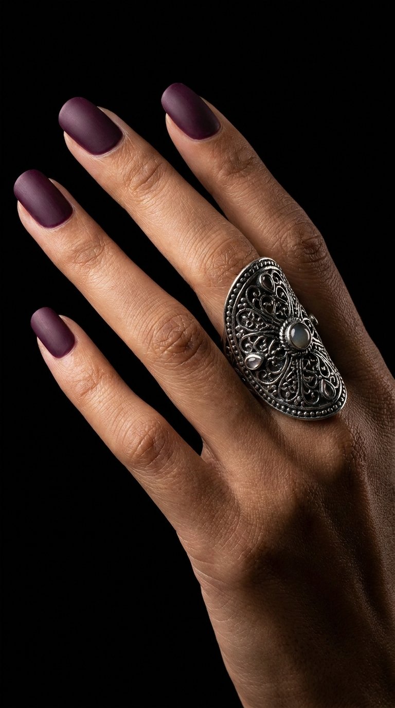 The solid color grounds your entire outfit. Dark browns act as a softer alternative to stark black polish. Dark polish creates a beautiful boundary around your nail shape. This makes your nail beds look longer and more slender. Brown polish flatters gold and silver rings perfectly. You project an aura of quiet luxury and high status. This color commands respect in professional environments.