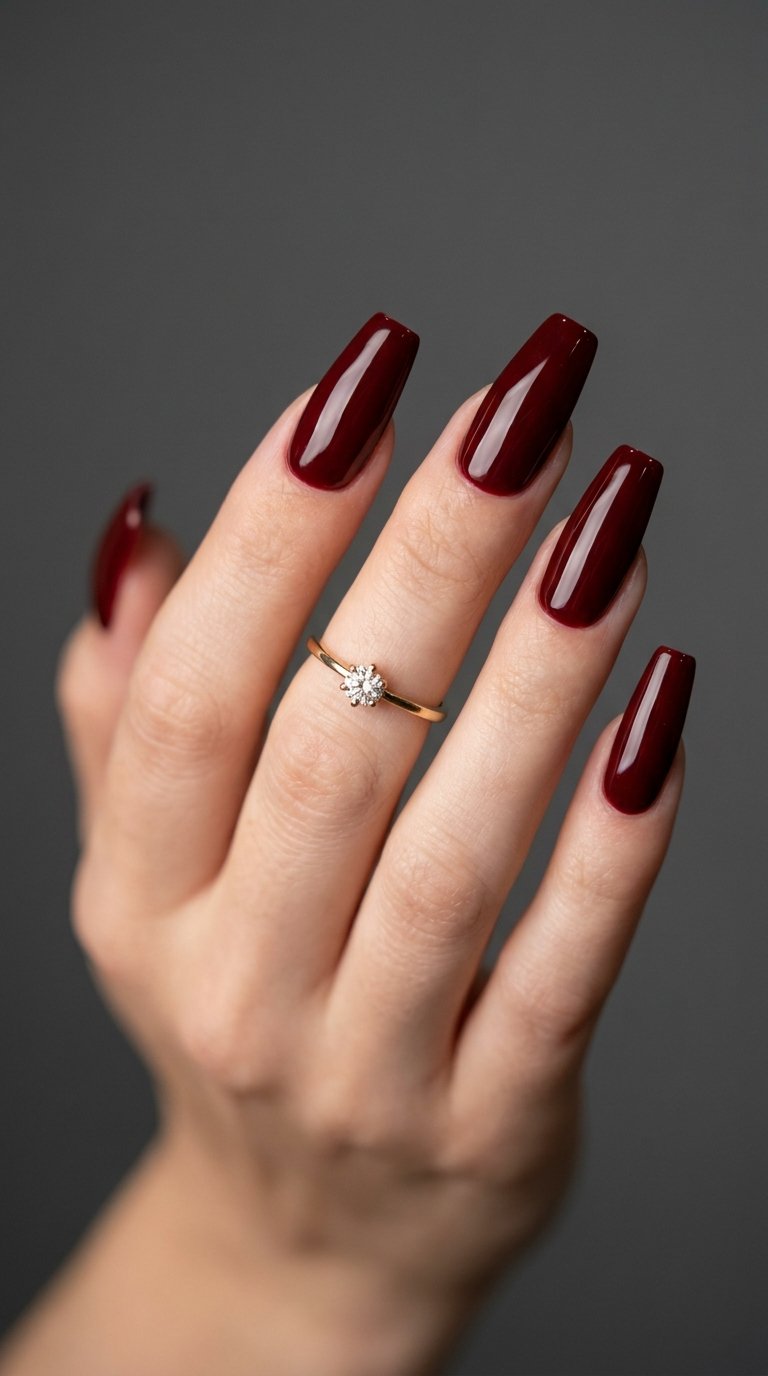 Under bright sunlight, the rich red tones glow intensely. Dark cherry tones define elegant winter nail color trends 2026. Oxblood red carries immense historical power and elegance. The deep tone makes your skin look porcelain and flawless. You exude confidence and undeniable charm. Dark red transitions seamlessly from daytime meetings to nighttime events. This shade remains a timeless classic forever.