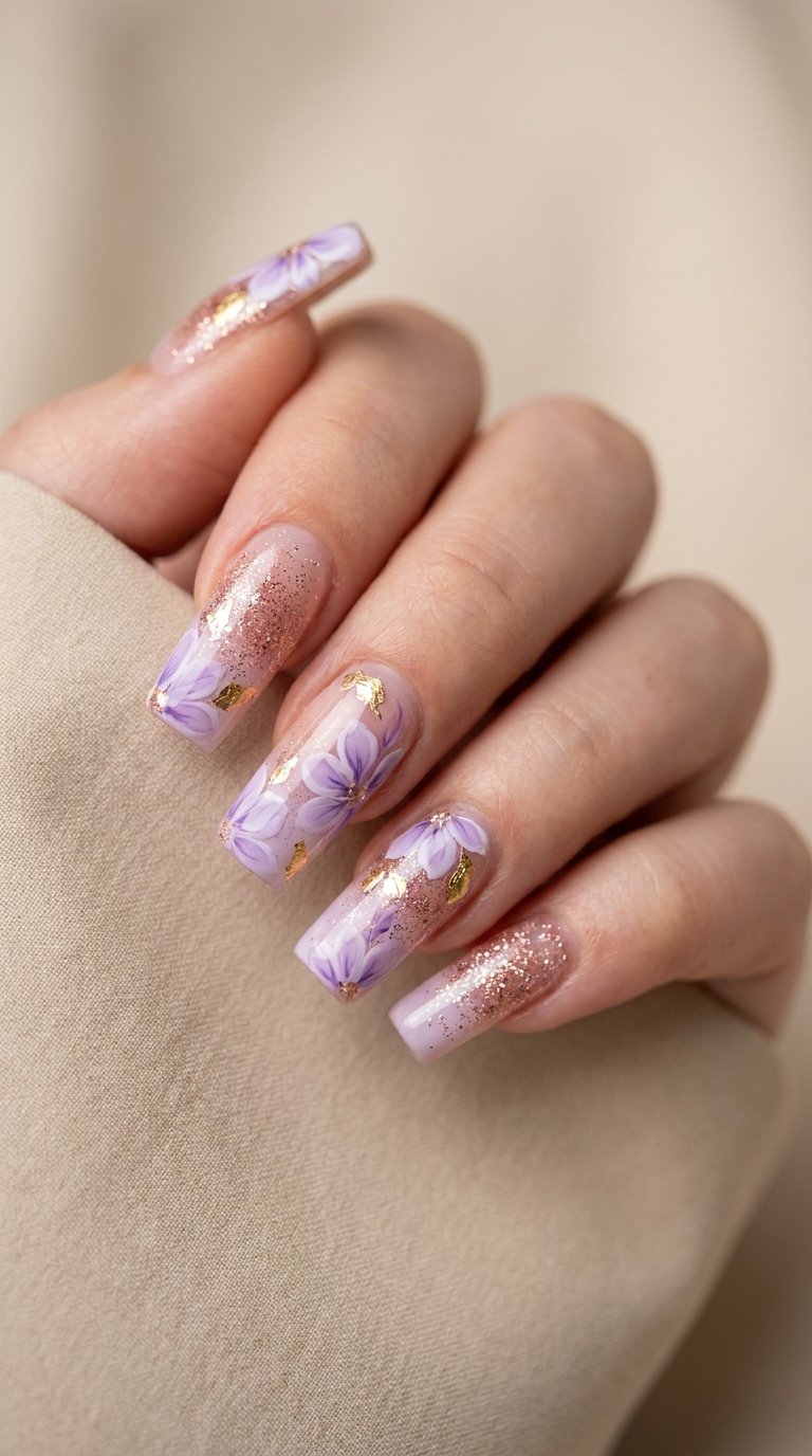 Glitter does not have to look childish. Sparkle symphony uses chunky holographic glitter suspended in a clear base. The multicolored glitter pieces reflect light like tiny prisms.