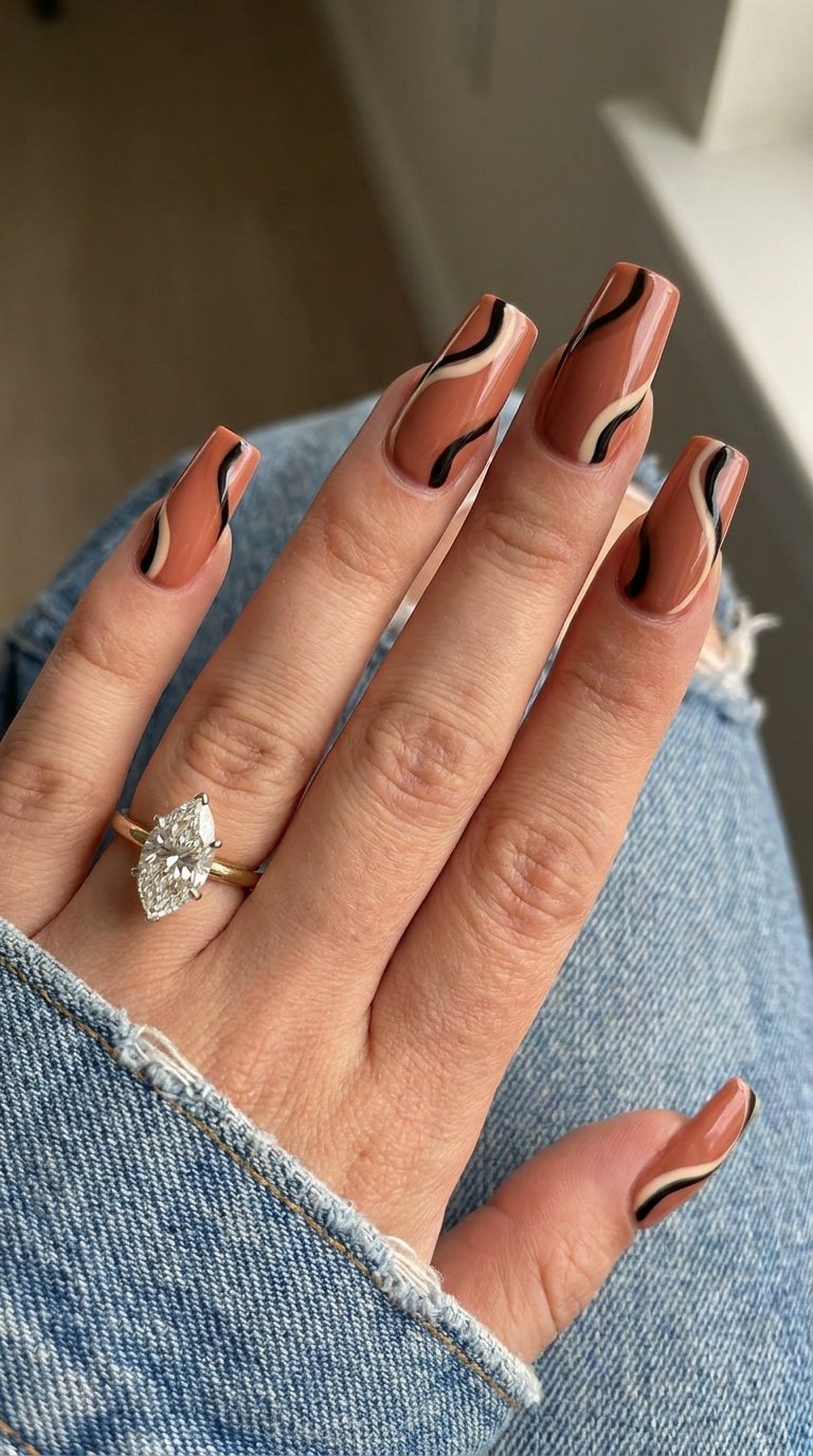 The organic lines create a relaxing visual flow. Stone patterns add an architectural element to your style. The fluid lines create a sense of movement and relaxation. You carry a miniature piece of art on your fingertips. The white base looks incredibly crisp and clean. Your hands look meticulously cared for.