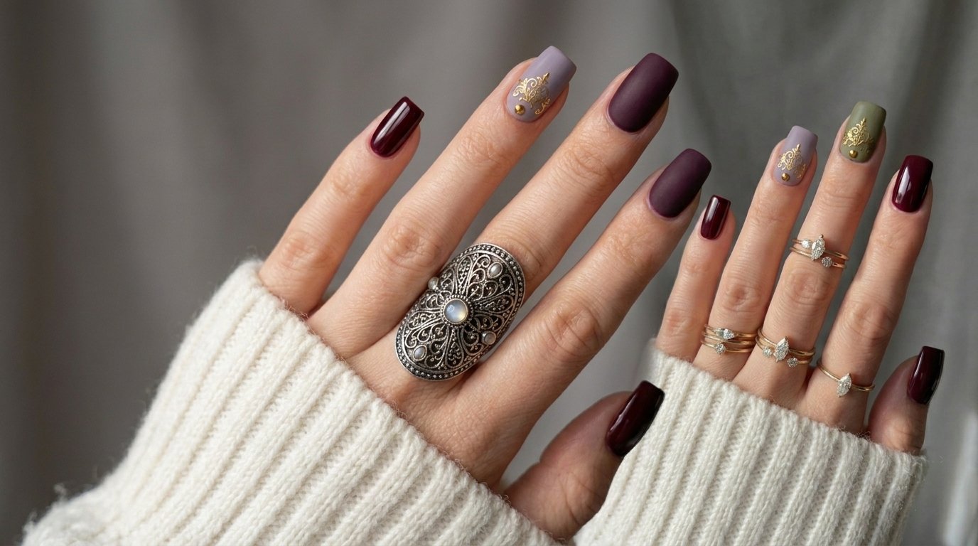 Start with a smooth base to prevent texture bumps. Matte polish highlights every single ridge on your nail. The look pairs wonderfully with cozy oversized sweaters and gold rings.