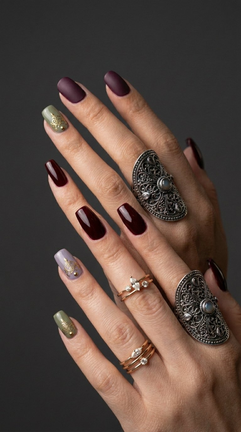 • Trendy matte nail paint finishes create a modern aesthetic.
