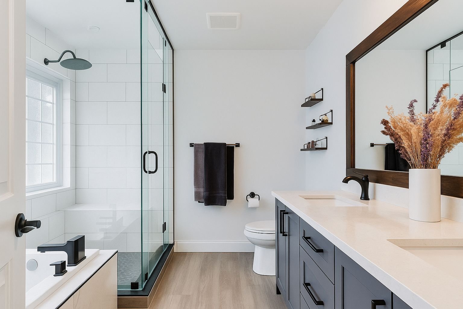 The real secret with materials, colors, and textures is that they need to talk to each other without shouting. You want variety, but you want it to feel intentional, not chaotic. Maybe you choose a bold colored vanity but keep the textures relatively simple. Or you go with a neutral color palette and introduce interest through mixed materials and varied textures. There’s no single right answer, and that’s what makes this process so personal and so fun. You get to decide what combination speaks to you, what makes you happy when you walk into that bathroom every single day.
