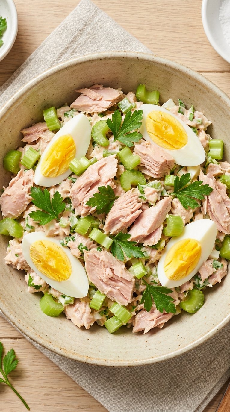 The protein packed tuna salad with egg trend proves that healthy eating does not have to be boring or difficult. You now have over two dozen brilliant ways to prepare, style, and serve this incredibly nutritious deli classic. From low carb lettuce wraps to elegant open faced sourdough sandwiches, this versatile dish fits perfectly into any modern lifestyle. Upgrading your ingredients and focusing on contrasting textures elevates a cheap pantry staple into a true culinary delight. What is your favorite secret ingredient to add to your daily fish lunches? Follow us on Pinterest for more high protein meal inspiration.