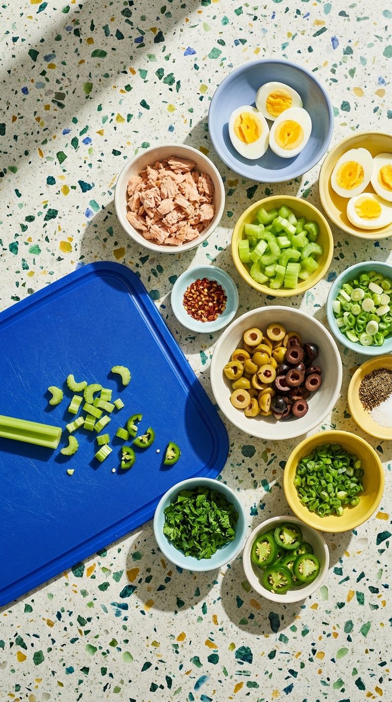 Gathering high quality components sets the stage for a perfect meal. You need two cans of solid white albacore packed in water for a clean flavor profile. Three large farm fresh eggs provide rich yellow yolks and firm white proteins. The creamy base requires three tablespoons of real mayonnaise or plain whole milk Greek yogurt. Two crisp celery stalks add necessary structural integrity to the soft mixture. One small red onion delivers a sharp aromatic bite. Fresh herbs elevate the entire dish above standard deli fare. You will need two tablespoons of finely chopped fresh dill and flat leaf parsley. A spoonful of whole grain Dijon mustard introduces a tangy depth. Sea salt and freshly cracked black pepper balance the savory elements perfectly. Gathering these fresh items guarantees a restaurant quality experience right in your own kitchen. You can easily find these budget friendly staples at any local grocery store. Pro Tip Keep all your fresh vegetables in the crisper drawer until the exact moment you plan to chop them. Save this idea to your Pinterest.