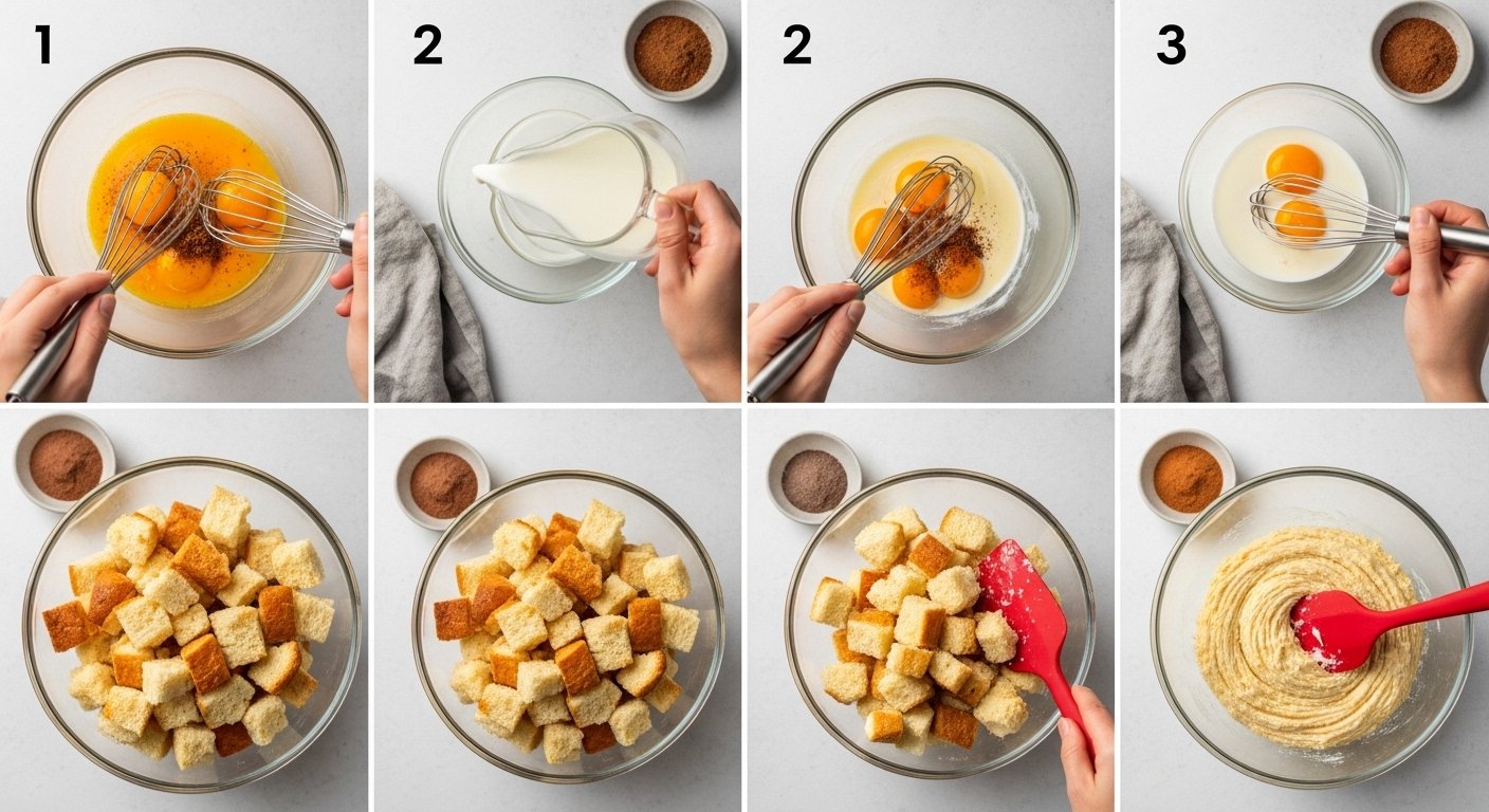 Preparing this dish early saves you time. You combine the dry cubes and liquid mixture in a baking pan. Cover the pan with plastic wrap. Store it in the refrigerator overnight. The long soak improves the final texture. The cold pan requires ten extra minutes of baking time.