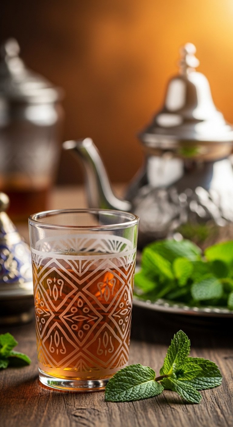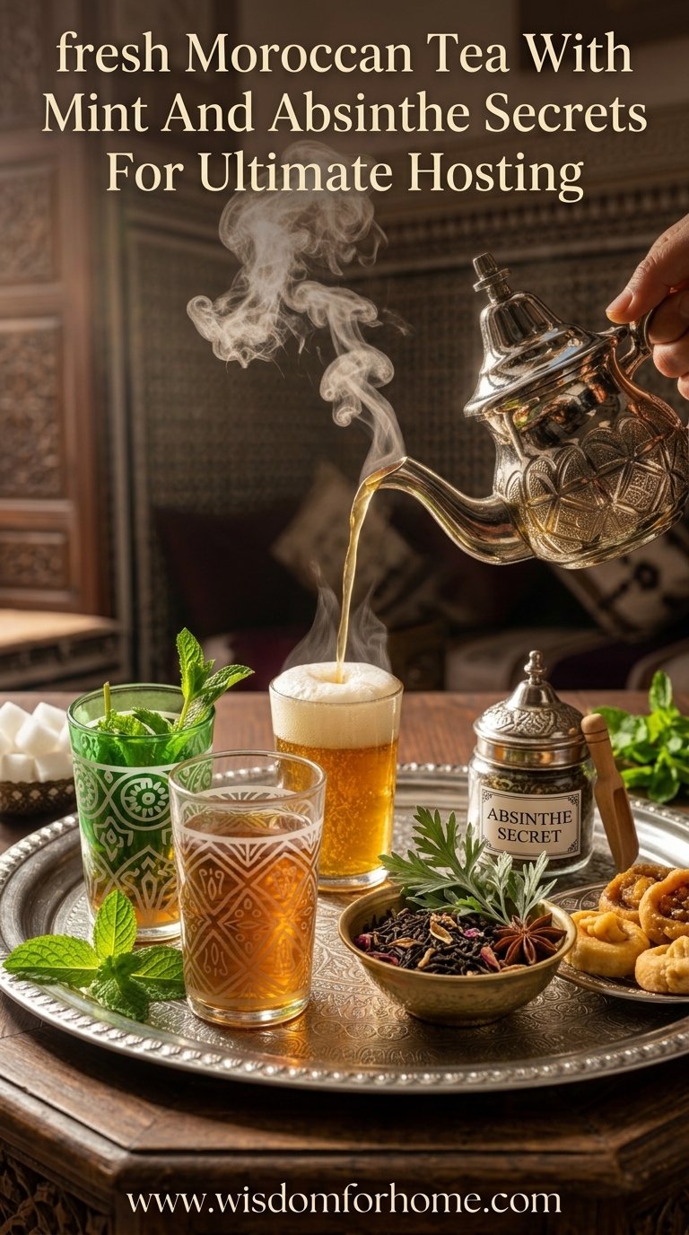 The viral trend of brewing traditional Moroccan tea with mint and absinthe brings incredible warmth to modern home hosting. The rich cultural ritual transforms a simple hot beverage into a stunning visual and sensory experience for your guests. Mastering the high pour and styling a geometric glass tray elevates your daily routine completely. What specific part of this beautiful serving station will you build in your kitchen first? Follow us on Pinterest for more Moroccan tea with mint and absinthe inspiration.