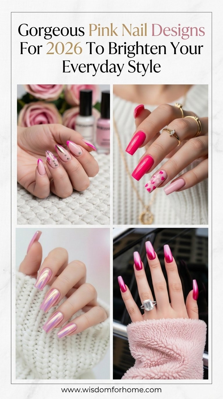 Pink nails offer an amazing spectrum of choices for every single style preference. You can switch from a soft elegant blush to a loud neon magenta. The right shape and the right shade elevate your daily outfits. We want to know which exact design you plan to try next. Will you choose the soft gradient or the bold metallic trim? Drop a comment below to share your favorite look. Follow us on Pinterest for more stunning pink nail inspiration.