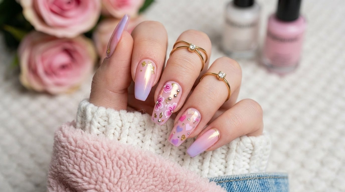 | Medium Almond | Elongates the fingers for a feminine look | Soft gradients and delicate floral art |