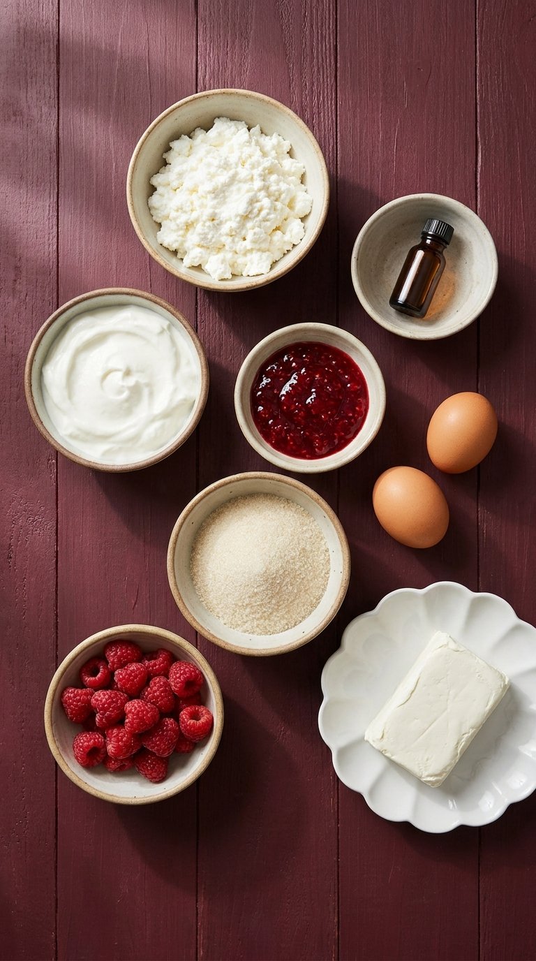 A creamy German cheesecake substitute starts with fresh dairy. The bright white curd forms a thick base. This clean visual canvas accepts any flavor profile. You need plain quark to build the structure. Choose full fat dairy for a dense crumb. Add two large eggs to bind the batter. The yolks create a pale yellow tint. Incorporate one scoop of your favorite whey protein. Vanilla whey adds a sweet aroma. A touch of cornstarch prevents cracks on the surface. You skip the heavy sugar. Use a monk fruit blend instead. This keeps the sweetness high and the calories low. Fresh lemon juice brightens the overall taste. A pinch of salt brings out the richness. Gather all items before you begin. Room temperature dairy blends best. Cold eggs will shock the batter. Leave everything on the counter for one hour. Smooth textures require proper prep work. The final slice looks smooth and velvety. Quality components yield a bakery fresh result. Save this idea to your Pinterest.