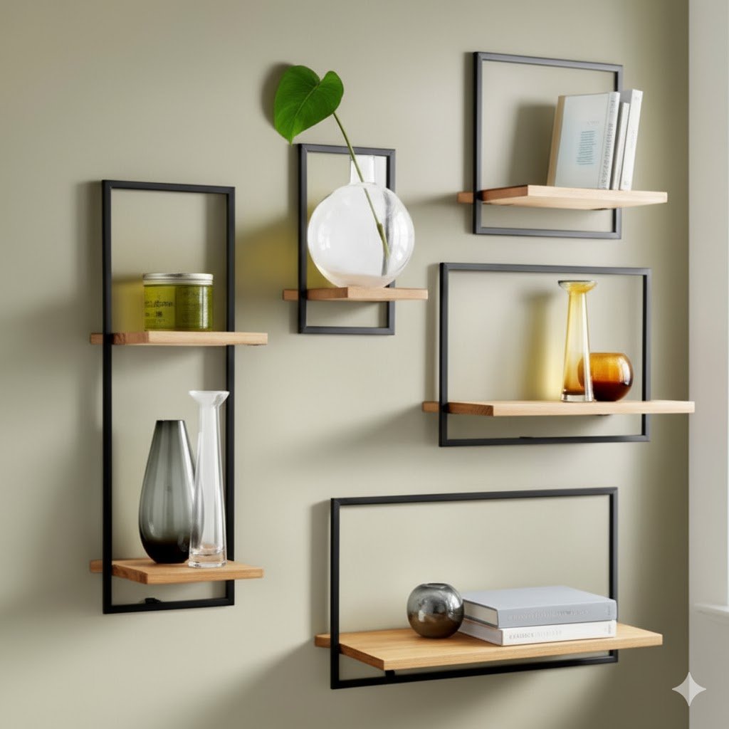 Picture this: a collection of wooden shelves arranged on your wall like pieces of a puzzle. Some squares, some rectangles, some floating at different heights. It creates this amazing collage effect that makes people stop and actually look at your wall instead of just glancing past it. The trick here is to keep the wood tones similar so everything feels connected, even if the shapes are all over the place. Think of it like a family photo where everyone’s wearing different outfits but they all coordinate somehow.